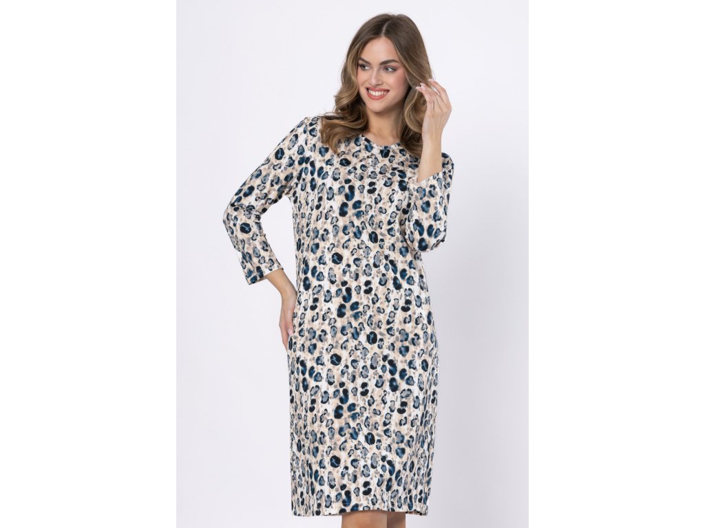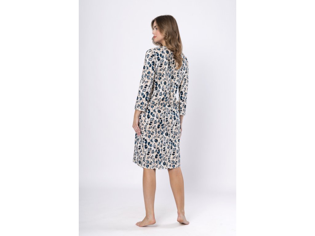 zdůrazňuje siluetu a dodává jí lehkost. Zvířecí leopardí vzor v béžové a tmavě modré barvě dodává košili
