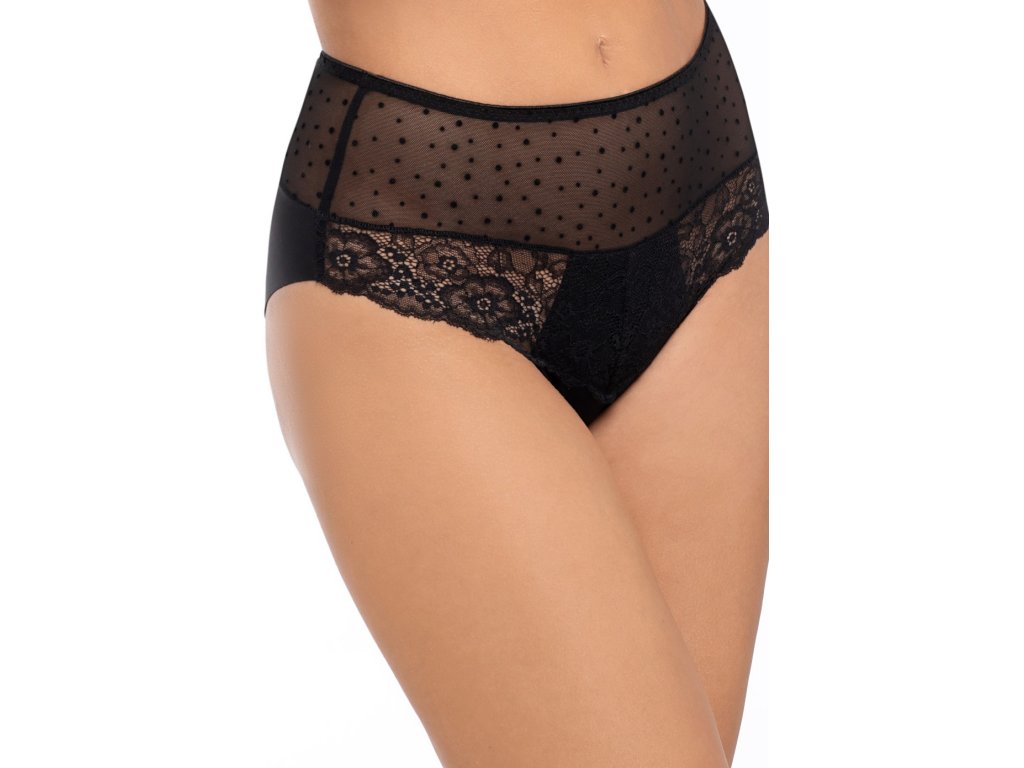Dámské kalhotky BBL 167 ● laserem střižené z krajky a tylu ● tylový pásek s ozdobnými jemnými tečkami, který drží bříško na místě ● ozdobná krajka na přední straně kalhotek ● laserem střižená zadní část, která není vidět pod oblečením ● s bavlněným rozkrokem ● ideální pro každodenní nošení