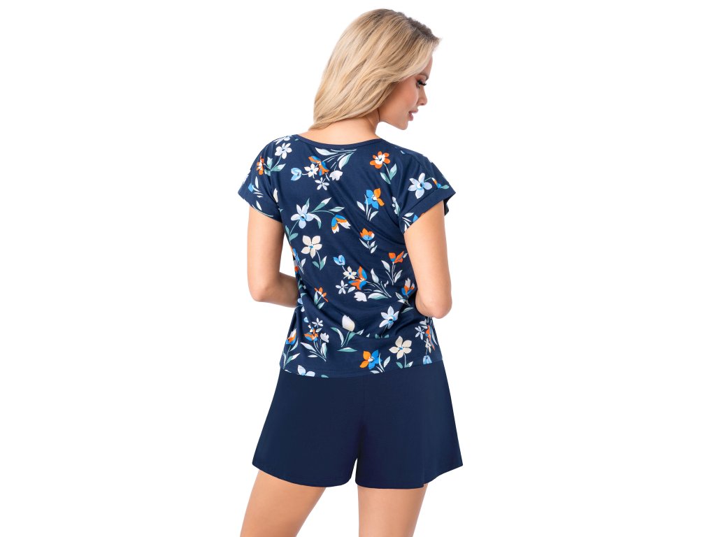 Dámské pyžamo Caroline Short ● z vysoce kvalitní bavlny ● halenka s květinovým potiskem ve volnějším střihu ● kimonové krátké rukávy ● malý výstřih ● pevné krátké šortky klasického střihu ● pohodlný elastický pas a ozdobná mašle ● baleno v plastovém sáčku