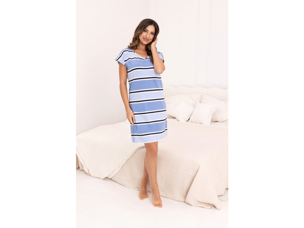 Dámská košile 170 ● vyrobená z vysoce kvalitní viskózy ● vzorovaná s barevnými pruhy ● s krátkým rukávem ● ležérní střih, délka před kolena ● půlkruhový výstřih ● v sáčku