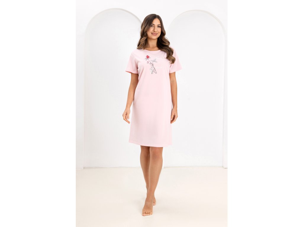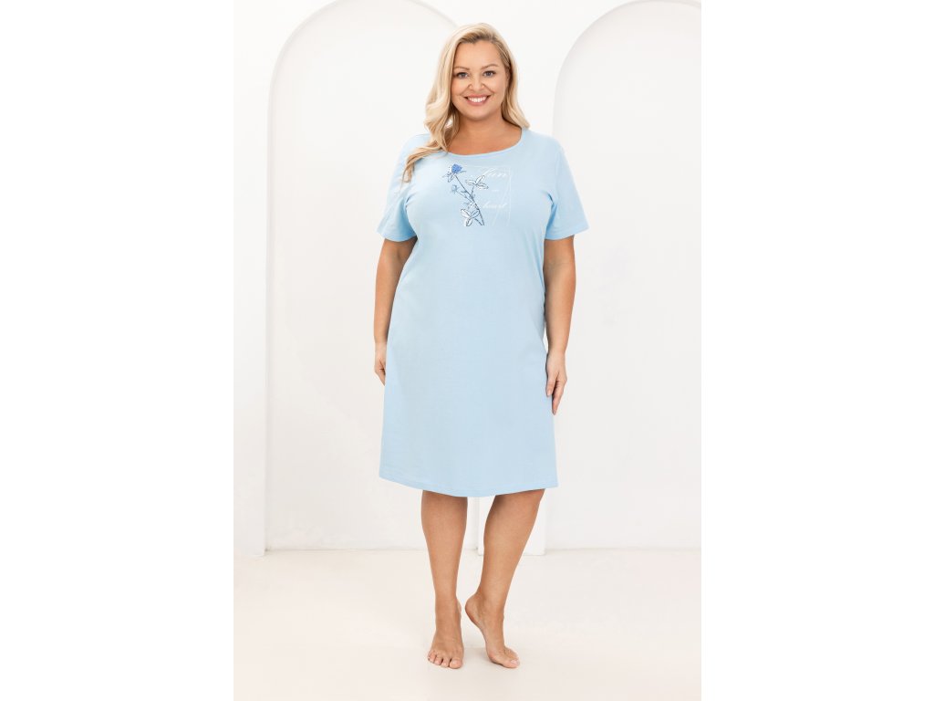 Dámská košile 172 ● vysoce kvalitní, měkká a prodyšná bavlna ● půlkruhový výstřih ● krátké, klasické rukávy ● ozdobná grafika na přední straně ● ležérní, rovný střih s délkou ke kolenům ● mírně rozšířený spodní lem ● baleno v estetickém sáčku
