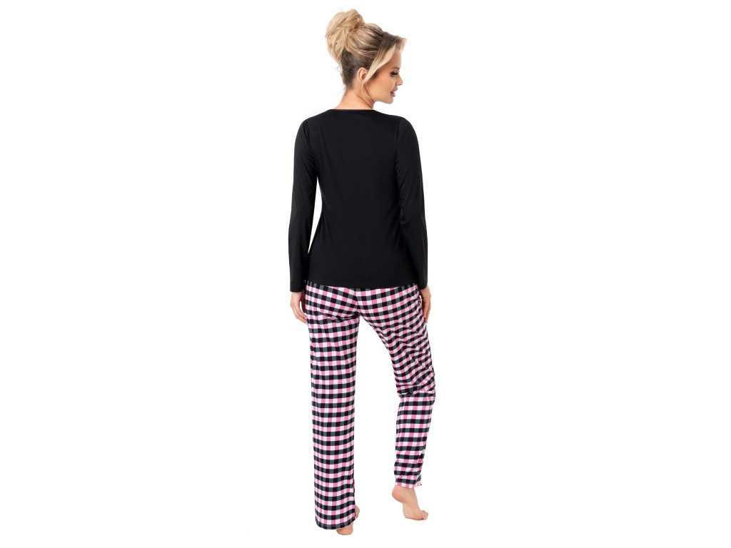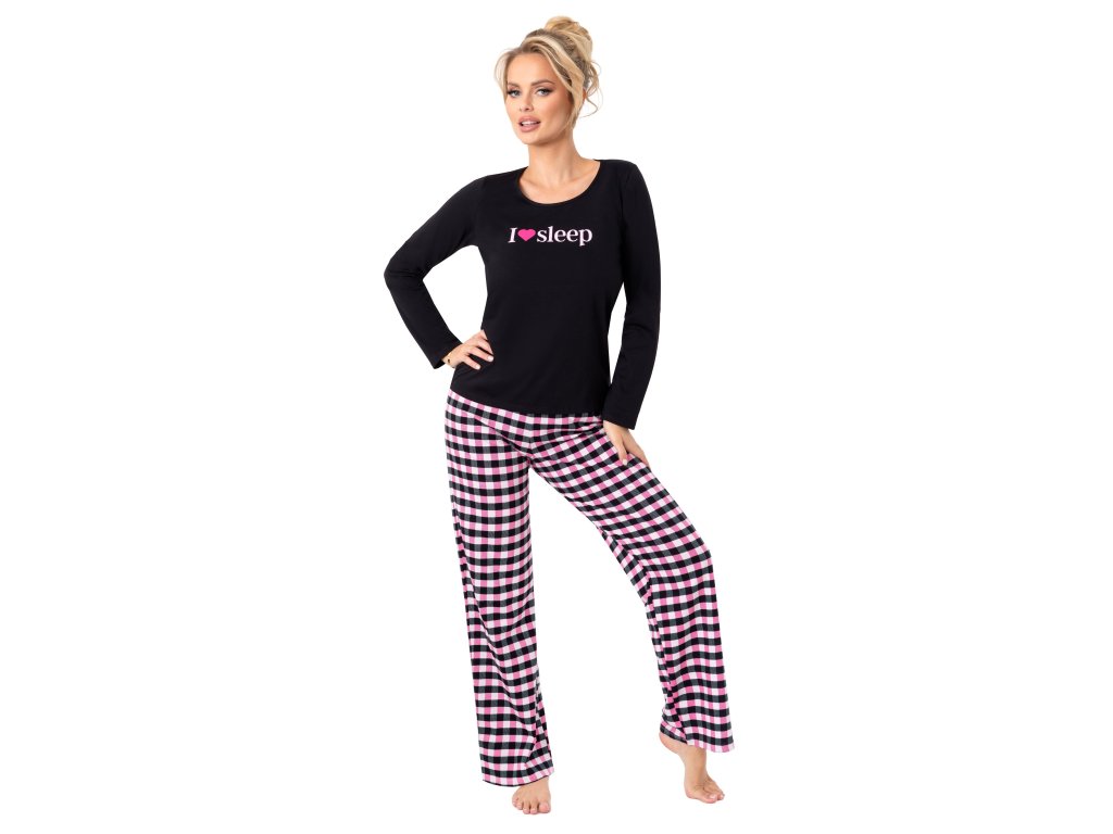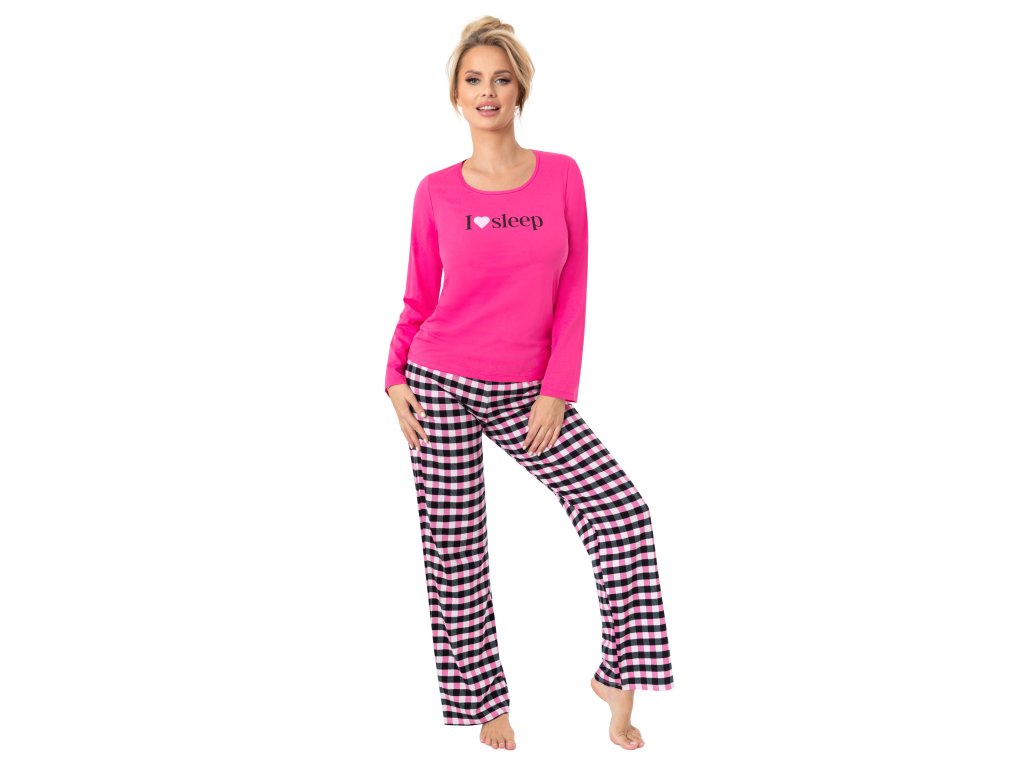 Spací dlouhé pyžamo ● z vysoce kvalitní bavlny ● halenka s dlouhými rukávy ● zdobená potiskem ● kulatý výstřih ● dlouhé kalhoty klasického střihu ● kostkované kalhoty ● baleno v plastovém sáčku