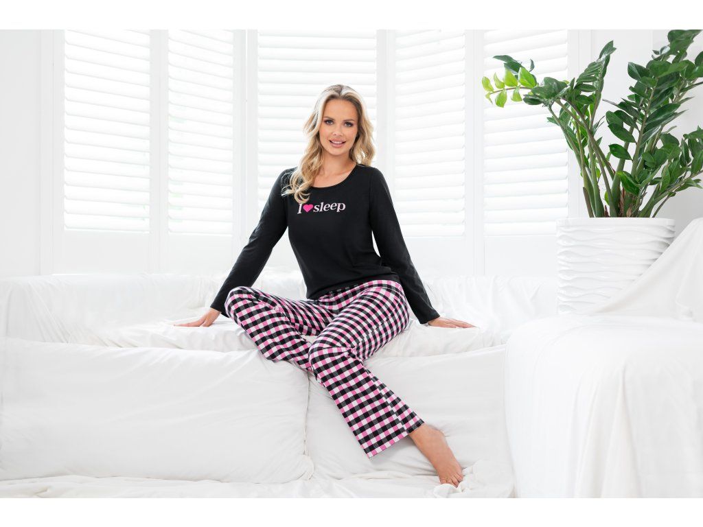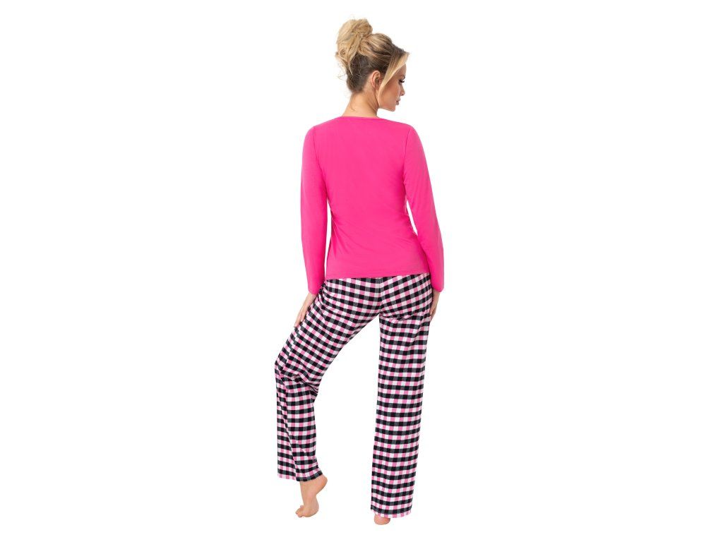 Spací dlouhé pyžamo ● z vysoce kvalitní bavlny ● halenka s dlouhými rukávy ● zdobená potiskem ● kulatý výstřih ● dlouhé kalhoty klasického střihu ● kostkované kalhoty ● baleno v plastovém sáčku