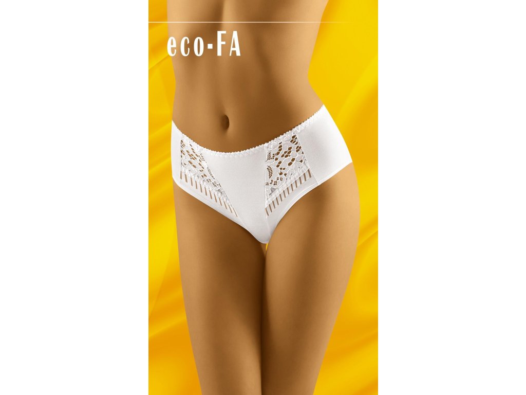 Spodní díl bikin Eco-Fa ● vestavěný, plný střih ● z organické bavlny ● přední díl navržený tak, aby opticky zeštíhloval postavu ● šikmé střihy a svislé pruhy úpletu opticky zeštíhlují postavu ● ideální pro dámy s plnější postavou ● hladká zadní část