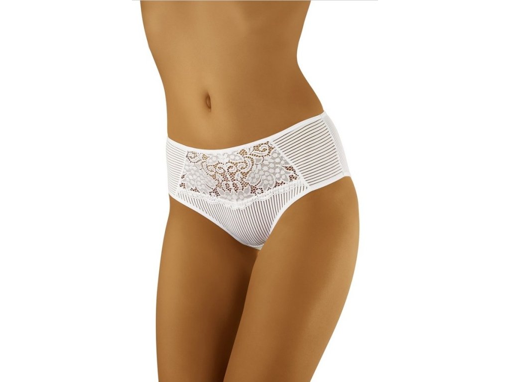 Spodní díl bikin Eco-Le ● plný z žebrovaného úpletu ● vpředu bohatě zdobený květinovou krajkou ● vzadu hladký