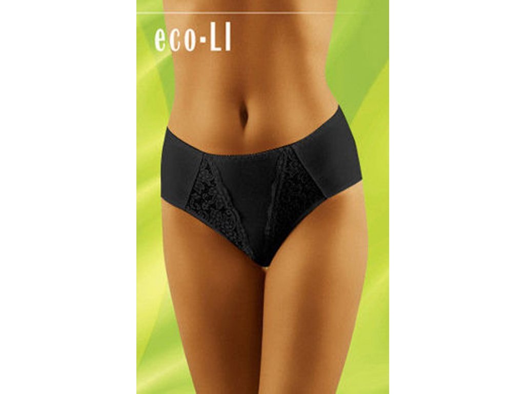Spodní díl bikin Eco-Li ● z vysoce kvalitní organické bavlny ● klasický střih se zvýšeným pasem ● trojúhelníkové krajkové vsadky na přední straně ● opticky zeštíhluje postavu ● hladká zadní část ● měkká bavlna příjemná na dotek