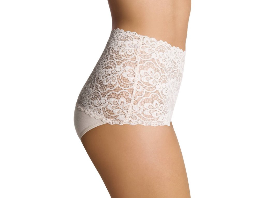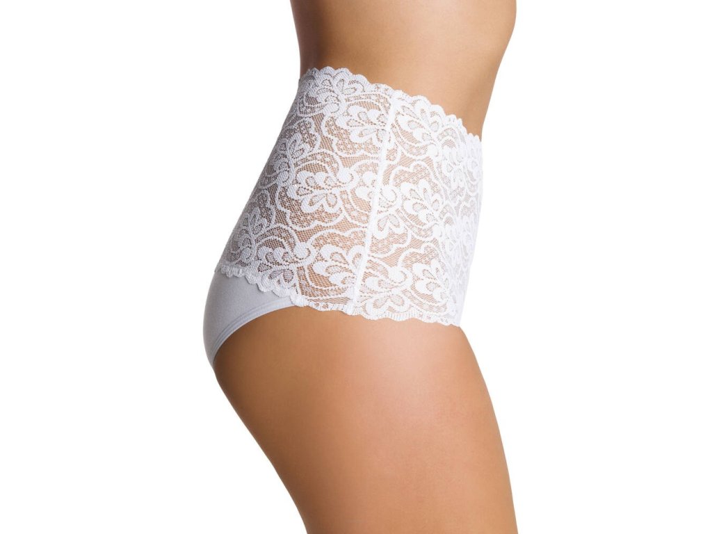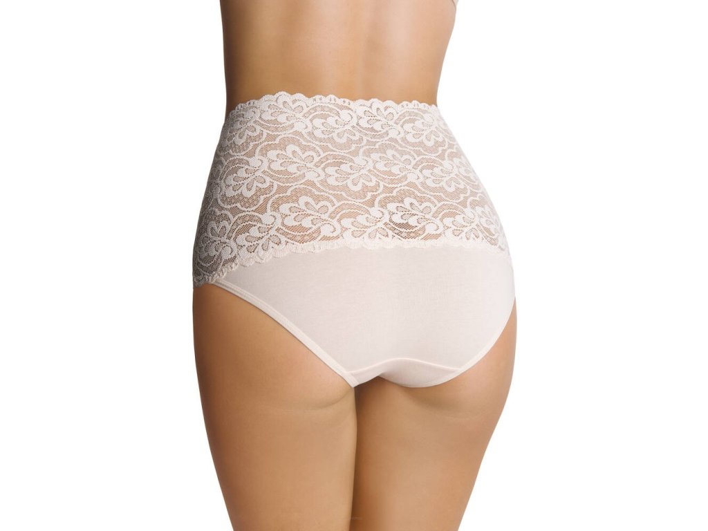 Kalhotky Enrica ● plné, pohodlné ● vysoké, postavené na bocích ● z prolamované krajky s květinovým motivem ● z vysoce kvalitní bavlny a elastanu ● balené v krabičce