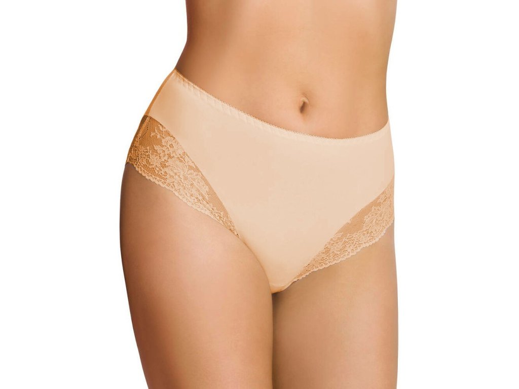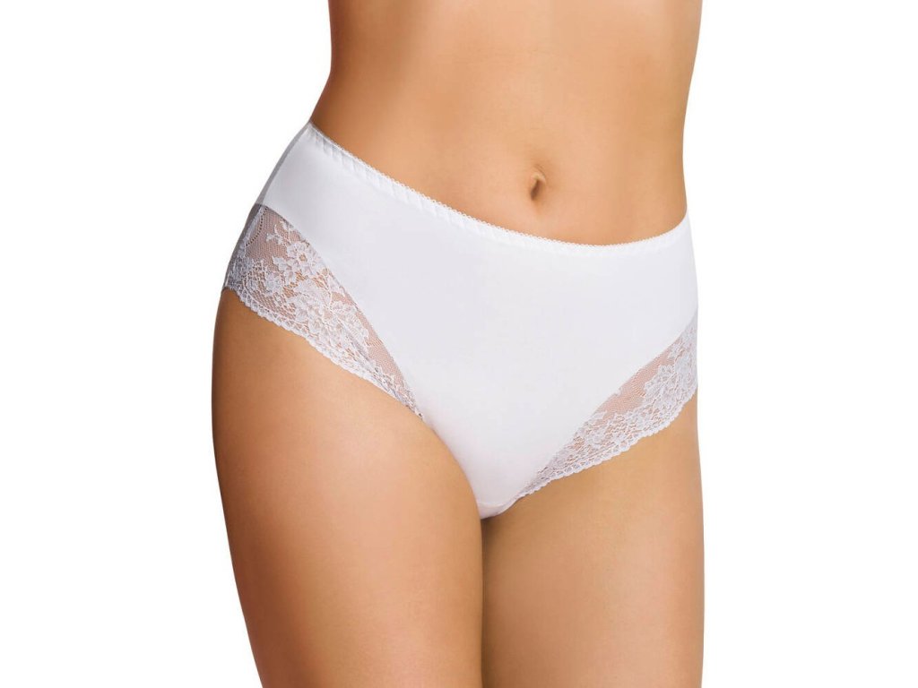 Kalhotky Eta ● z bavlny ● plné, s vysokou linií pasu ● se zvýrazněnými boky ● nohavičky zakončené ažurovou krajkou s květinovým motivem ● zadní část zcela z bavlny ● baleno v krabičce