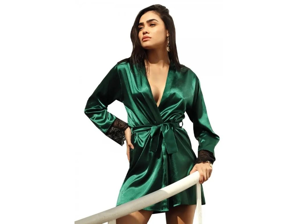 Košilka Hailey ● jednoduchá a klasická ● vyrobená z příjemné saténové látky ● sahá před kolena ● má dlouhé volné rukávy zakončené černou krajkou ● zavazuje se tenkým páskem, který zvýrazňuje pas