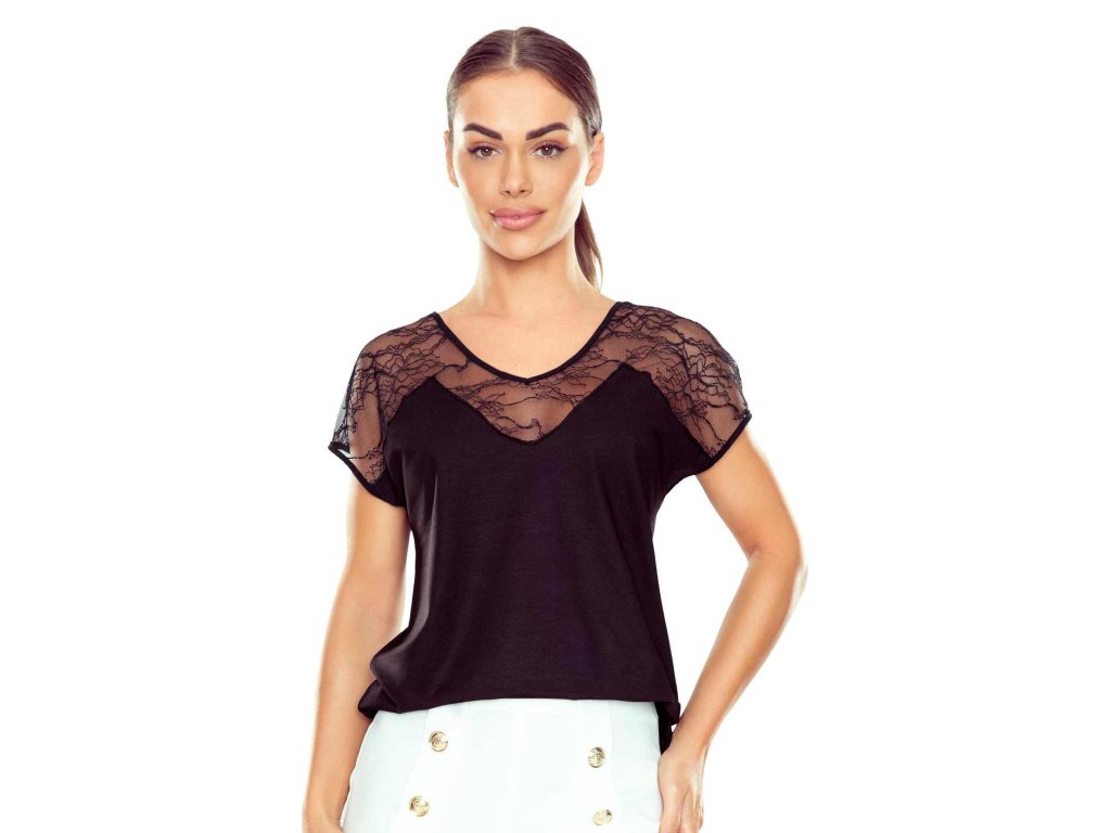 Halenka Filona Plus ● přírodní materiál: z 90% viskózy ● je vzdušná, měkká a příjemná na dotek ● potěší ženským půvabem a jemnou elegancí ● hluboká barva v kombinaci s jemnou krajkou vytváří mimořádně stylový efekt ● má krátké rukávy s čepičkou, mírně spadající na ramena ● horní část halenky a rukávy jsou z nápadného.., horní část halenky a rukávy jsou vyrobeny z působivé květinové krajky ● krajka vytváří na ramenou smyslné splývání a ve výstřihu tvoří tvar písmene V ● krásně zeštíhluje krk a dodává siluetě lehkost ● jednoduchý, lehce ležérní střih zajišťuje pohodlné nošení ● pěkně přiléhá k tělu, aniž by byla příliš těsná ● ideální volba do kanceláře i na romantickou večeři