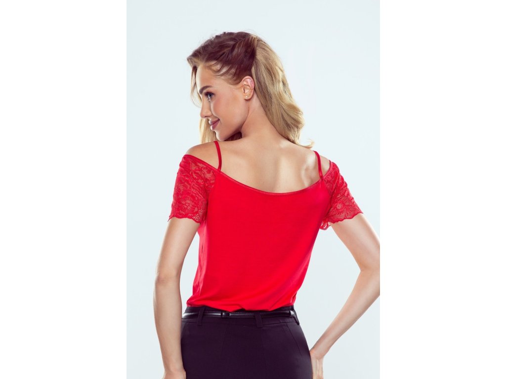 Halenka Irina KR ● imitující dvouvrstvý top ● krajkové krátké rukávy ● pruhovaný krajkový výstřih ● snížený výstřih držený tenkými ramínky