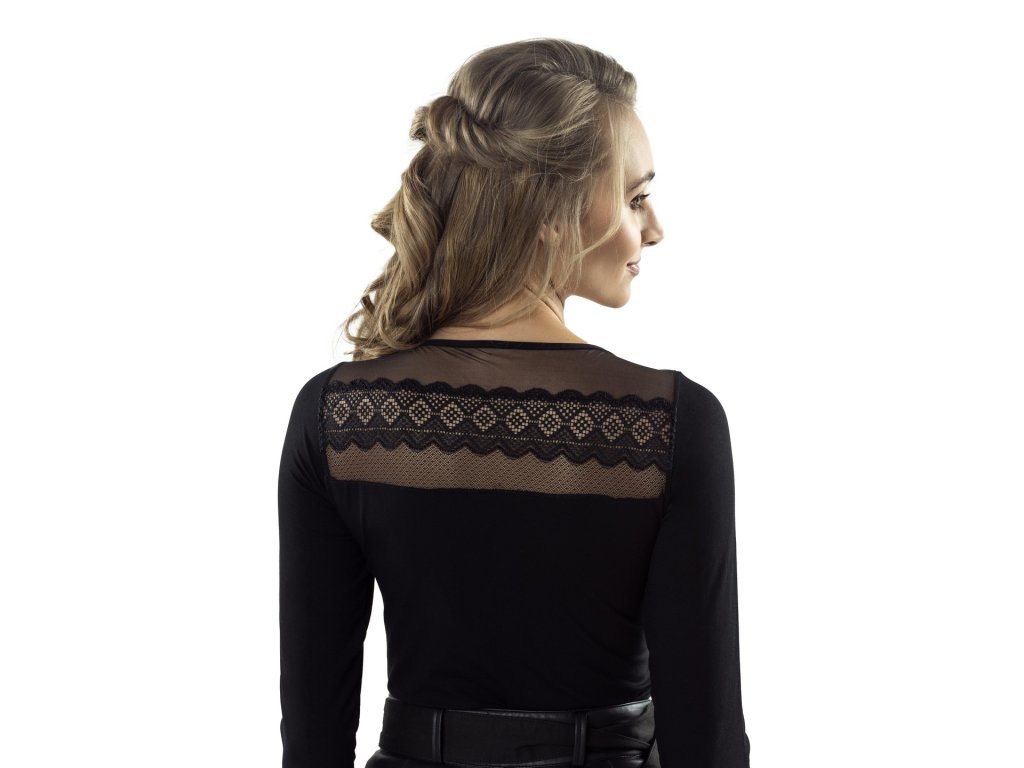 Halenka Kioko ● z vysoce kvalitní příjemné viskózy ● s dlouhými rukávy ● dokonale se přizpůsobí tvaru postavy ● působivý výstřih a záda s vložkami z jemného tylu v kombinaci s elegantní krajkou ● baleno v estetické krabičce