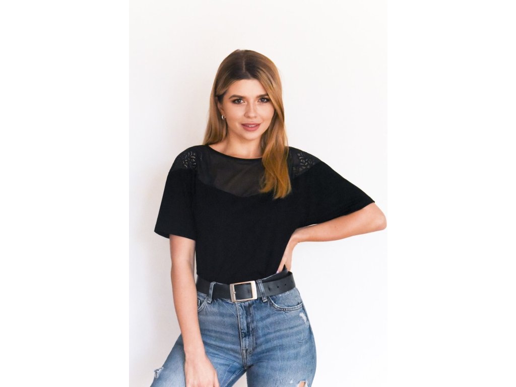 Solange KR halenka ● s krátkými rukávy ● výstřih a'la hiszpanka pokrytý tylem a krajkovou vložkou ● na zádech kravata s výřezem ● baleno v elegantní krabičce