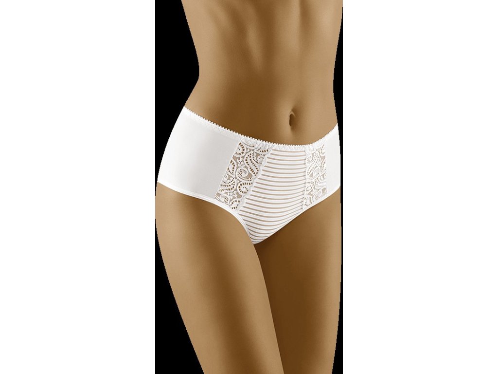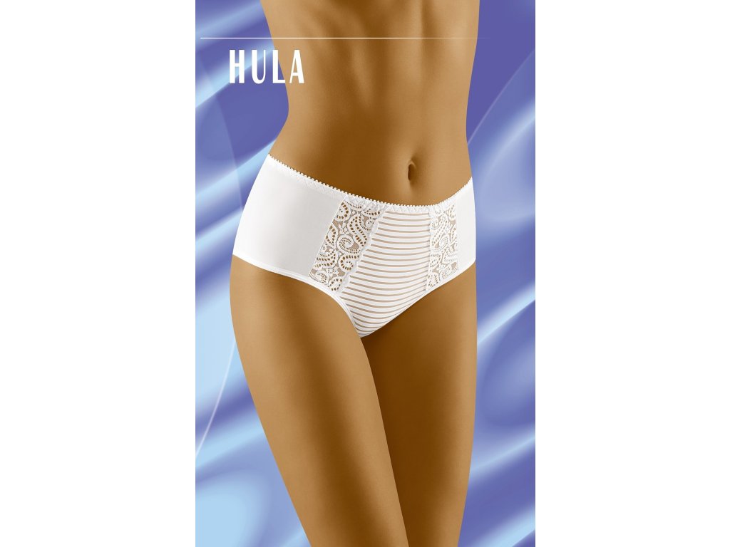 Spodní díl bikin Hula ● vysoký, elegantní ● tvarující břicho ● silná elastická síťovina pod pruhovaným úpletem ● posílení zeštíhlujícího efektu ● hladká záda