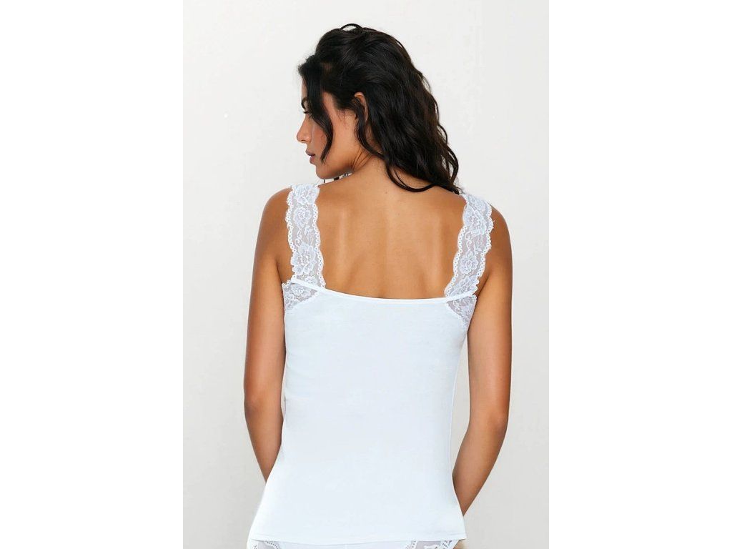 Tričko Indira ● vyrobeno z vysoce kvalitní bavlny ● s širokými krajkovými ramínky ● hluboký krajkový výstřih ● měkká, elastická krajka s květinovým motivem ● odolný, pohodlný a hebký na dotek úplet ● vypadá decentně a elegantně ● lze nosit jak jako tílko, tak i jako samostatný top