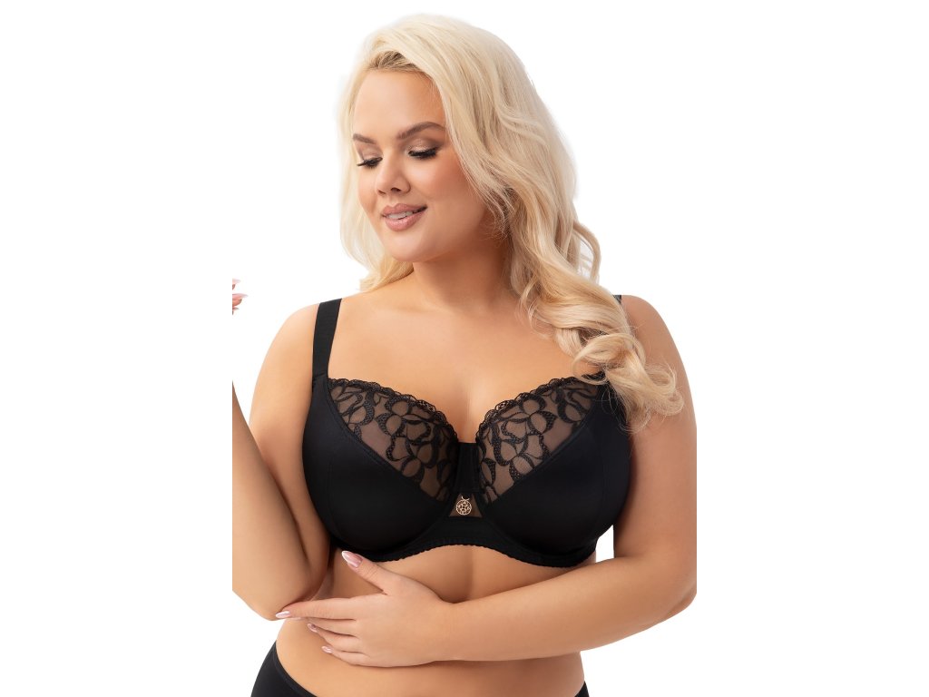 Podprsenka Isla K934 Black ● měkká, určená pro ženy se středním, měkká, určená pro ženy se středně velkými, velkými a velmi velkými prsy ● měkká, určená pro ženy se středně velkými, velkými a velmi velkými prsy ● velmi měkká, určená pro ženy se středně velkými, velkými a velmi velkými prsy ● poskytuje velmi silný liftingový a sběrný efekt ● třídílná podprsenka z neprůhledné simplexní látky a výšivky podšité stabilním tylem ● záda z lycry pro velmi dobré přizpůsobení a oporu ● boční velrybí kostice zabraňující vyhrnování ● v závislosti na velikosti dvouřadé nebo třířadé zapínání na háčky a očka lemované mikrovláknem s třístupňovou regulací obvodu ● neodnímatelná, nastavitelné ramenní popruhy ve čtyřech šířkách ● kovové prvky ve světle zlaté barvě (neobsahují nikl)