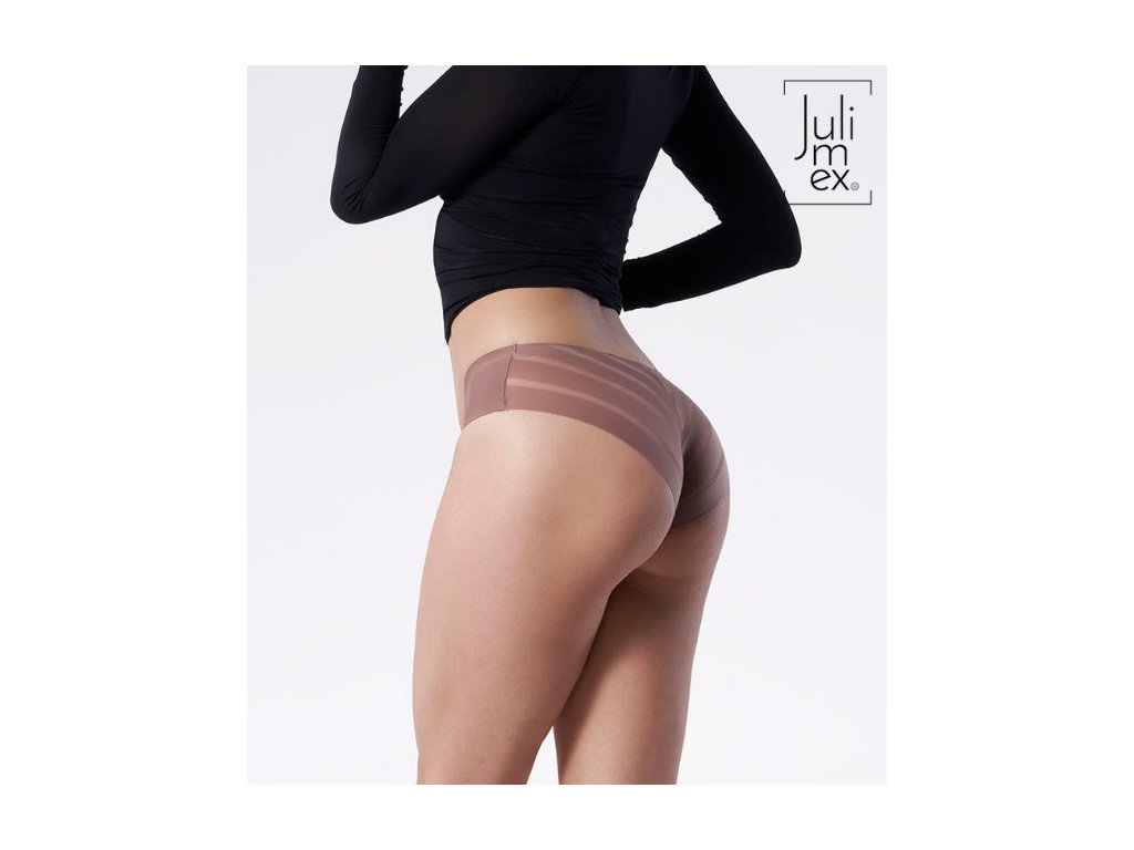 Spodní díl bikin Joy Choco ● s ozdobným síťovaným akcentem na hýždích ● s ozdobným síťovaným akcentem na hýždích ● mají větší výřez na hýždích ● odhalují hýždě ● jsou vyrobeny z látky, která je jemná na dotek ● jsou elastické a dokonale se přizpůsobí postavě ● mají hygienickou bavlněnou vložku