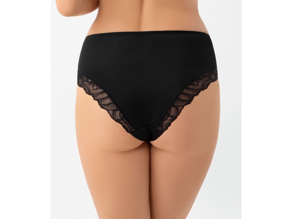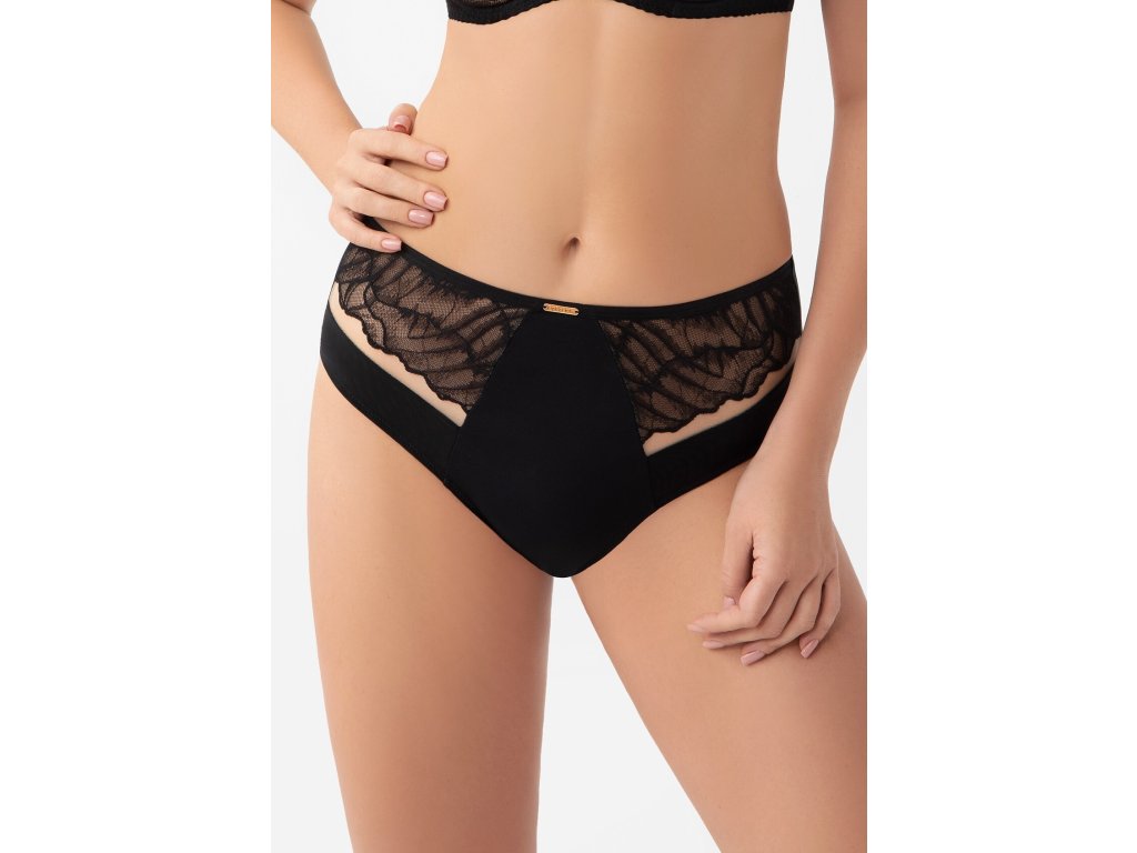 Kalhotky Celia K954 Černá ● vyšší horní část ● vestavěný střih, který zakrývá téměř celý zadeček ● z neprůhledného mikrovlákna v kombinaci s elastickým tylem a krajkou ● zadní část zakončená krajkovým lemem ● kovové prvky ve světle zlaté barvě (neobsahují nikl) ● bavlněný rozkrok