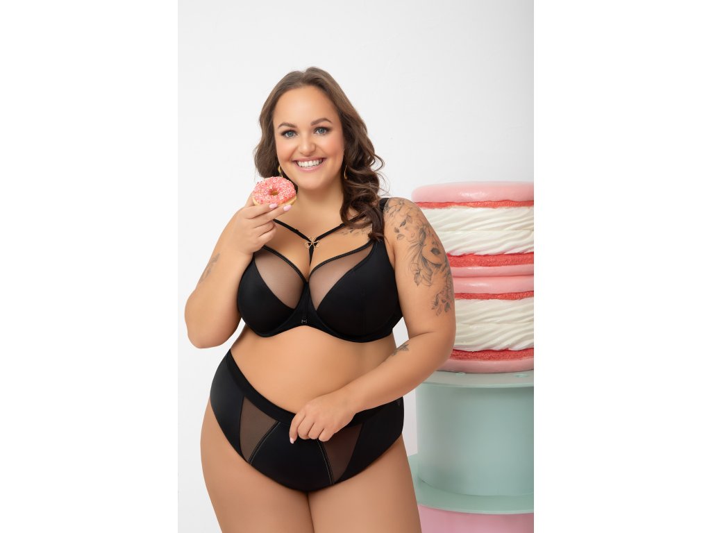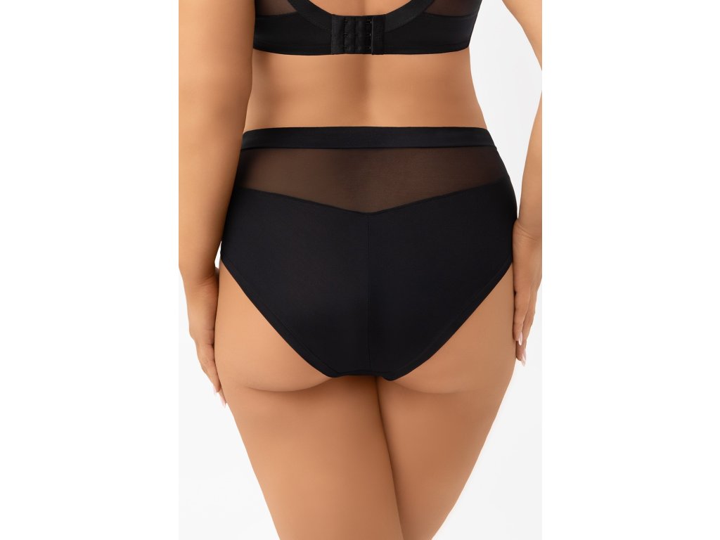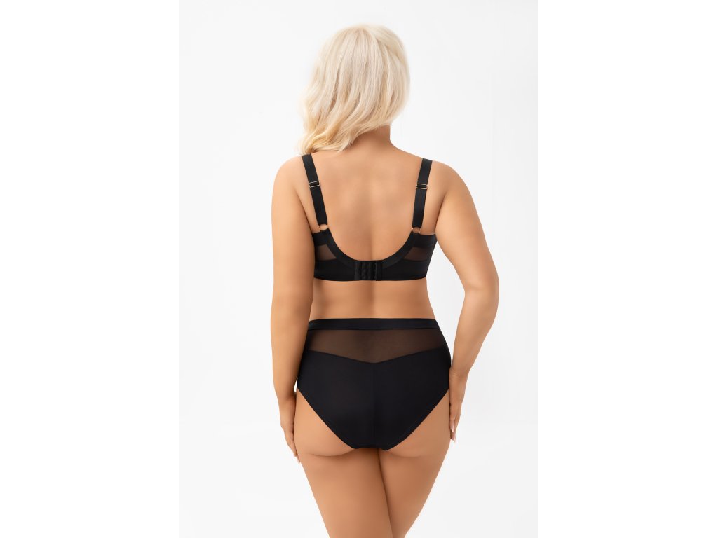Marisa F005 Černé bikiny ● vyšší horní díl ● vestavěný střih, který zakrývá téměř celý hýždě ● z neprůhledného mikrovlákna a elastického tylu ● stabilní tylové vsadky na přední straně ● zadní díl zakončený rovným ohrnutím okraje mikrovlákna ● široký pás z mikrovlákna ● bavlněný rozkrok