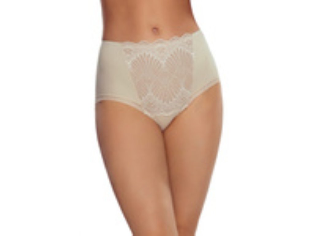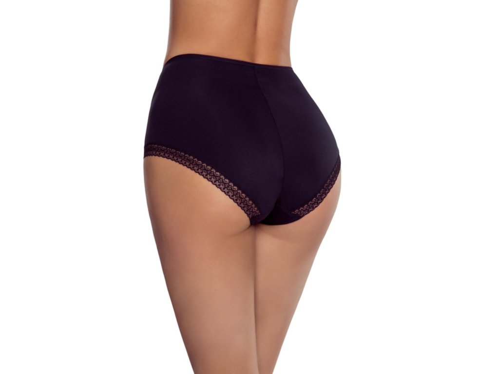 Tvarující kalhotky s vysokým pasem, zdobené krajkou. Ploché úpravy zajistí pohodlí a dvojitá vrstva pod bříškem jemně tvaruje postavu.