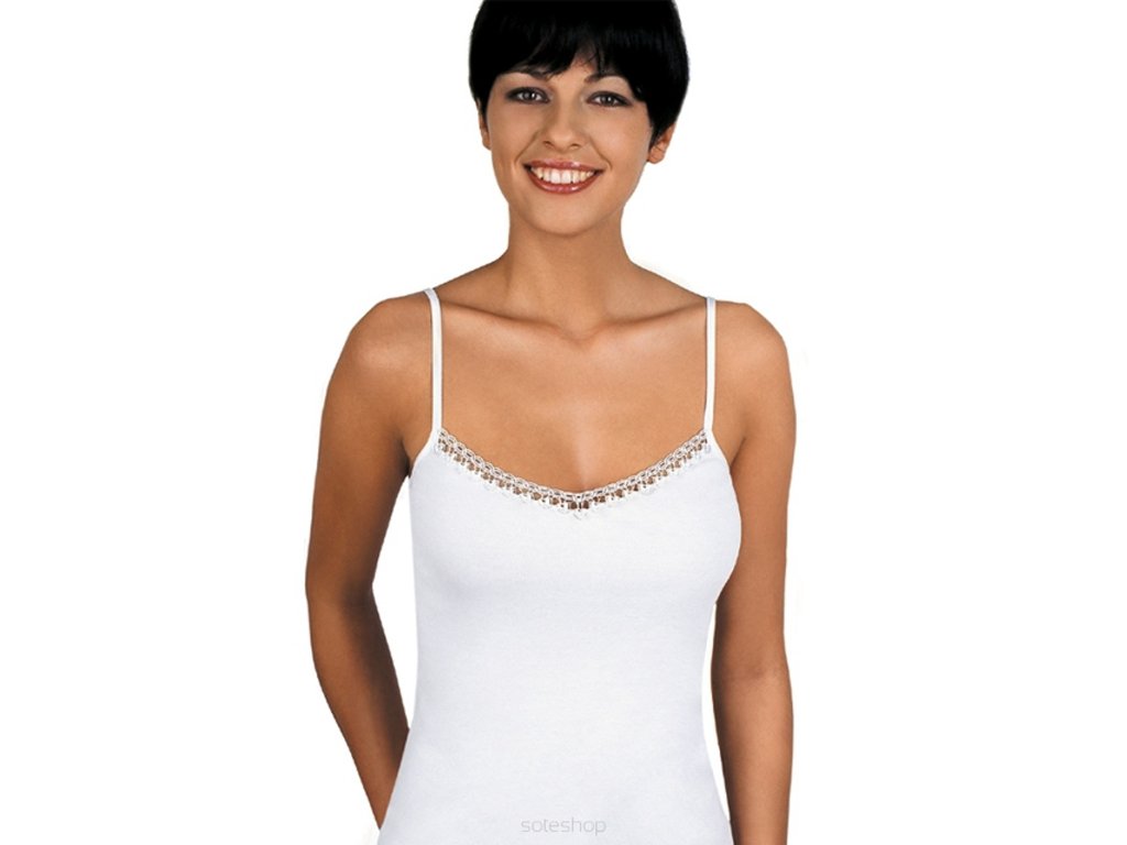 Blanca T-shirt White ● na úzkém pásku ● z vysoce kvalitního bavlněného úpletu ● látka jemná a měkká na dotek ● velmi dobře přiléhající k tělu ● poskytuje vysoký komfort nošení ● hluboký výstřih zdobený jemnou krajkou ● baleno v krabičce