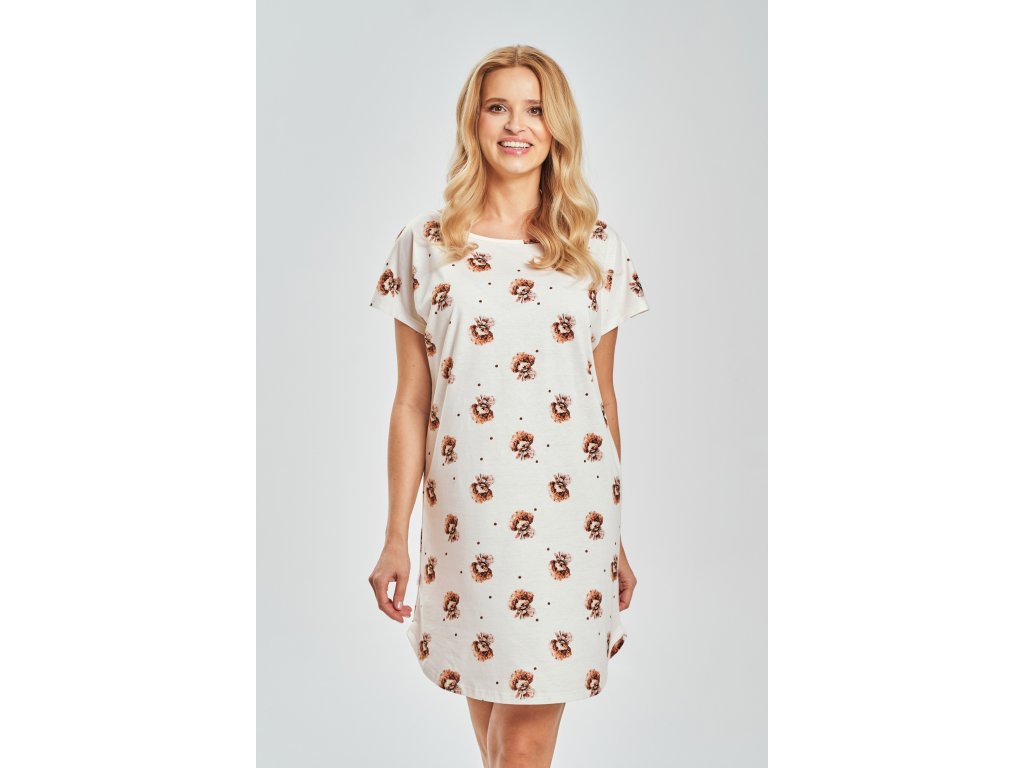 Tričko Coco 3517 ● z měkké bavlny ● ve světlé barvě s potiskem pejsků a malých teček ● krátké rukávy, kulatý výstřih ● délka před kolena ● střih pro naprostou volnost pohybu a pohodlné nošení ● baleno v plastovém sáčku