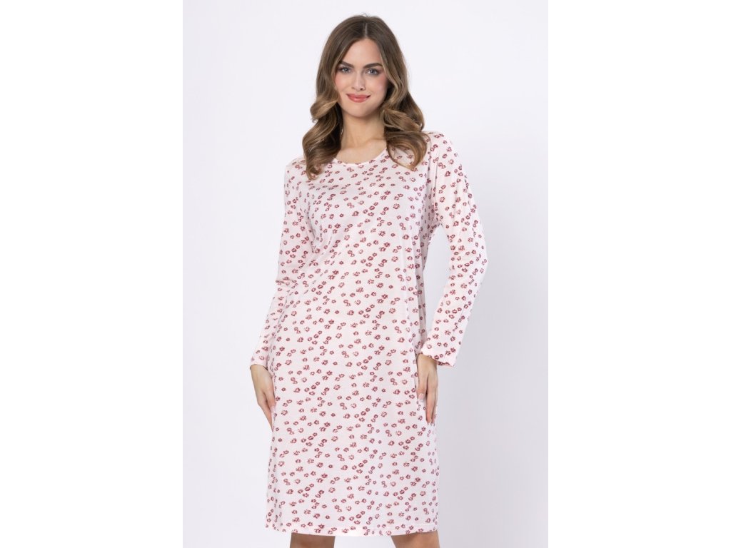 Dámská košile z vysoce kvalitní měkké bavlny s rostlinným potiskem. Kulatý výstřih a dlouhé rukávy.