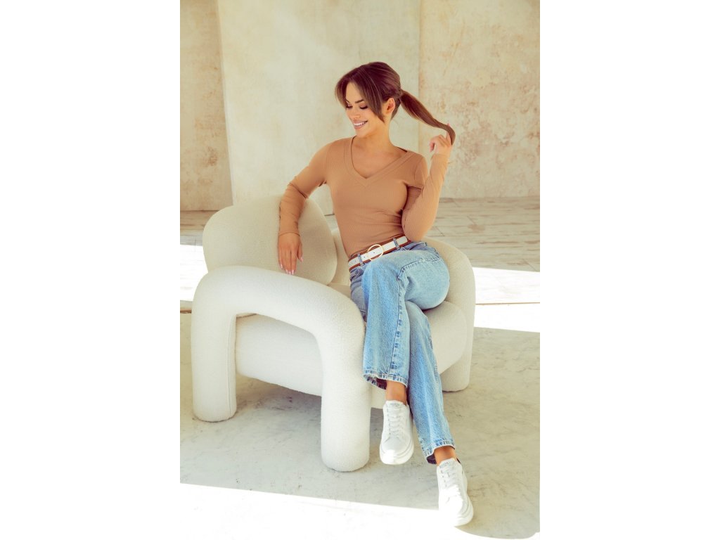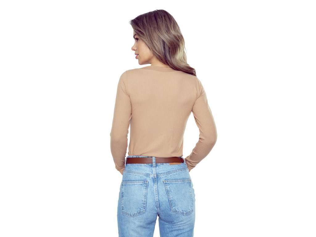 Eleonor Plus Shirt Beige ● klasická halenka s dlouhými rukávy ● s výstřihem do V ● z měkké žebrované přírodní viskózy ● elastická a velmi příjemná na nošení ● vypadá skvěle samostatně, ale bude také dobře fungovat jako základ pod sako nebo svetr ● střih na míru