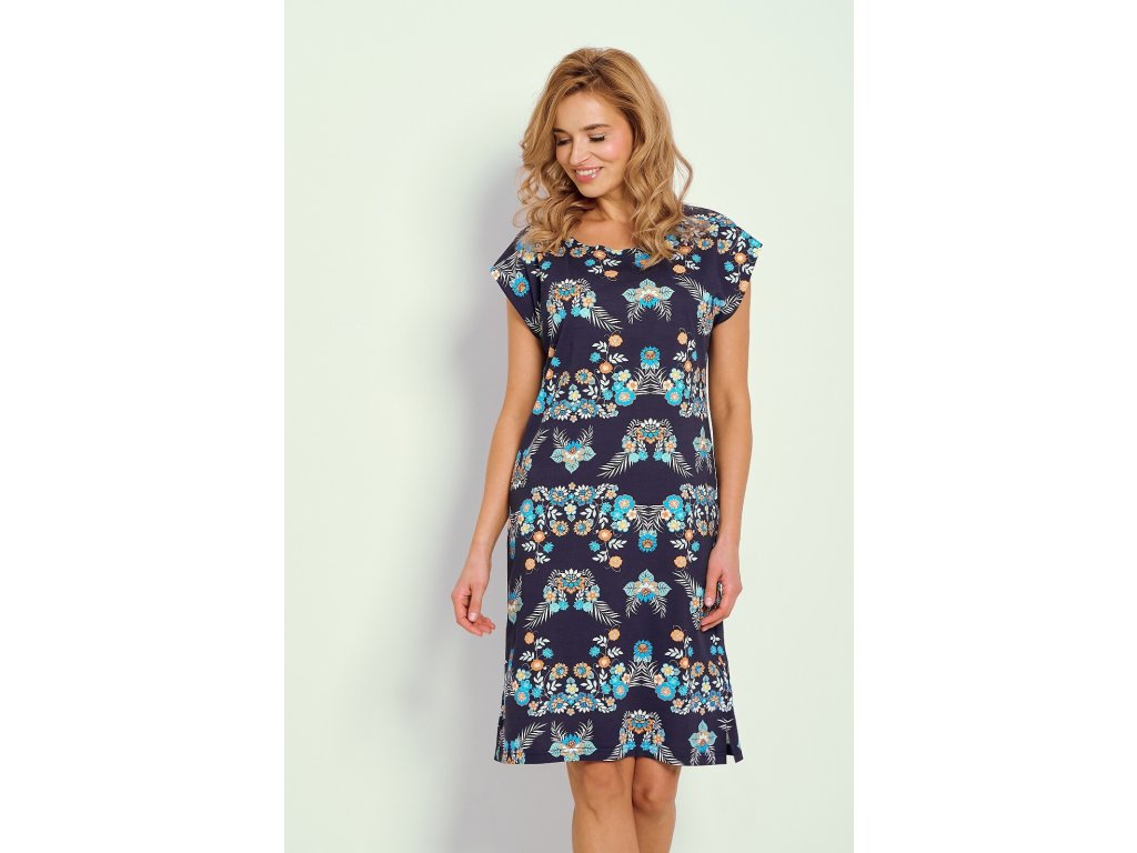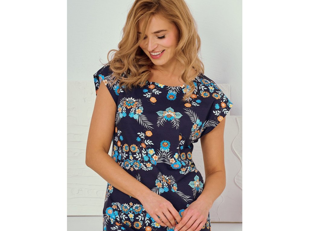 Košile Jodie 3330 ● z vysoce kvalitní vzorované bavlny ● potištěná zajímavým květinovým motivem ● krátké motýlí rukávy ● kulatý výstřih ● délka ke kolenům ● spodní část košile s rozparky na bocích