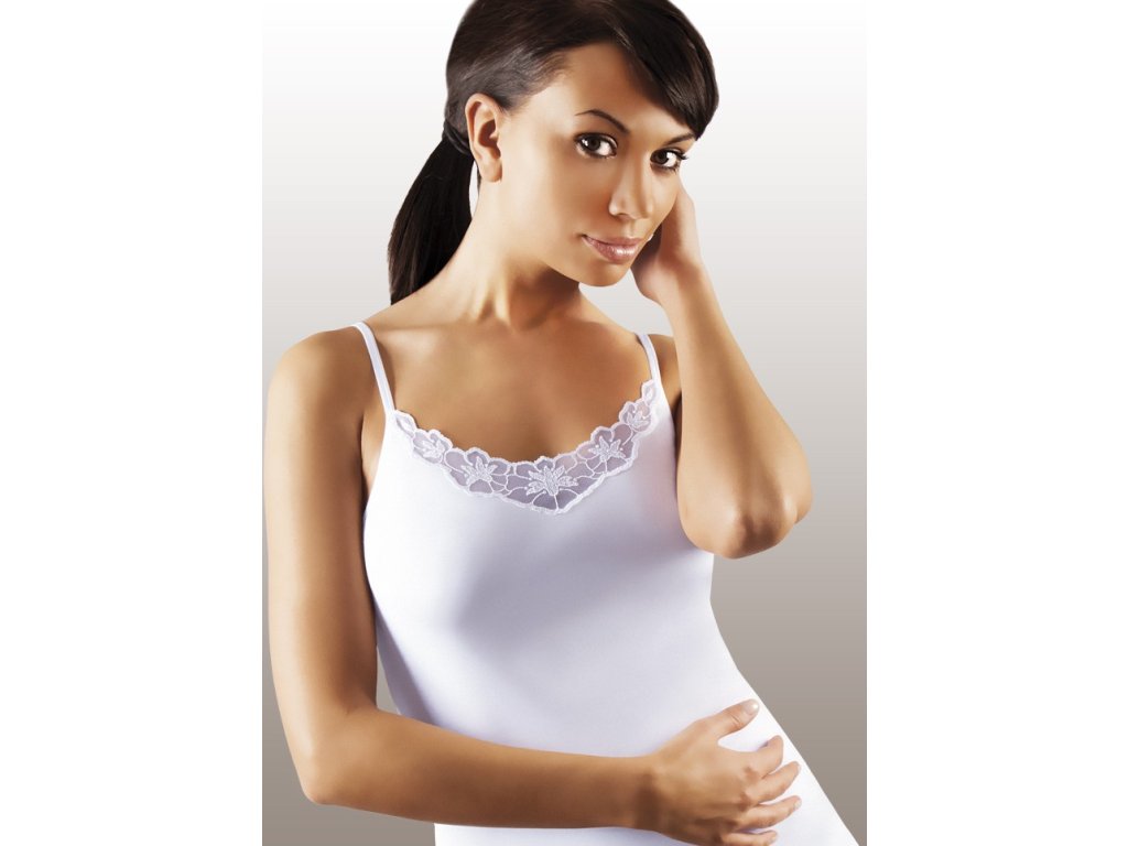 Kitti Shirt White ● na úzkých ramínkách ● z měkkého bavlněného úpletu ● přední část košile zdobená jemnou tylovou vložkou ve výstřihu ● baleno v krabičce