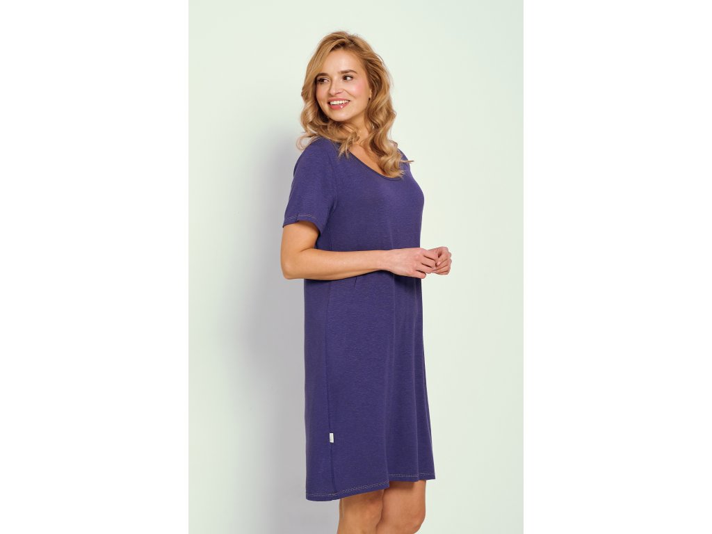 Košile Serenity 3350 ● ušita z lehké viskózové tkaniny v kombinaci se lnem ● krátké rukávy s kulatým výstřihem ● volný, pohodlný střih ● délka před kolena ● jemné prošívání stříbrnou nití pro stylový nádech ● ideální pro teplé noci a domácí relaxaci