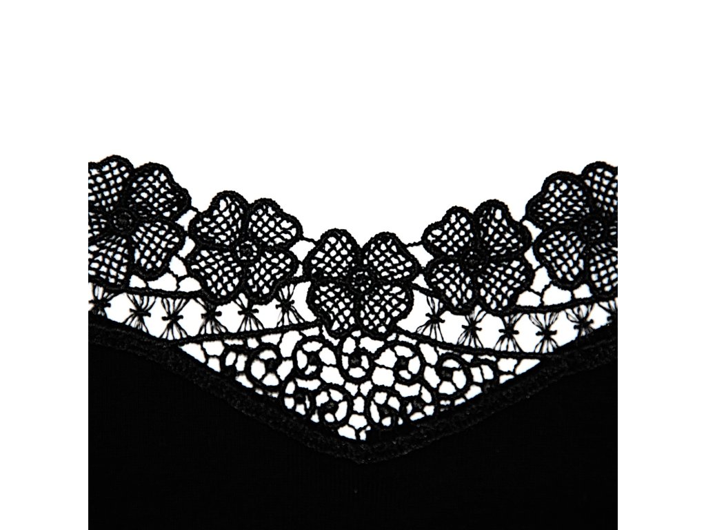 Tričko Thea Black r.XXL ● z měkké bavlny ● na širokém pásku ● výstřih zdobený vložkou z jemného, krásného gipuru, s květinovým motivem ● baleno v krabičce