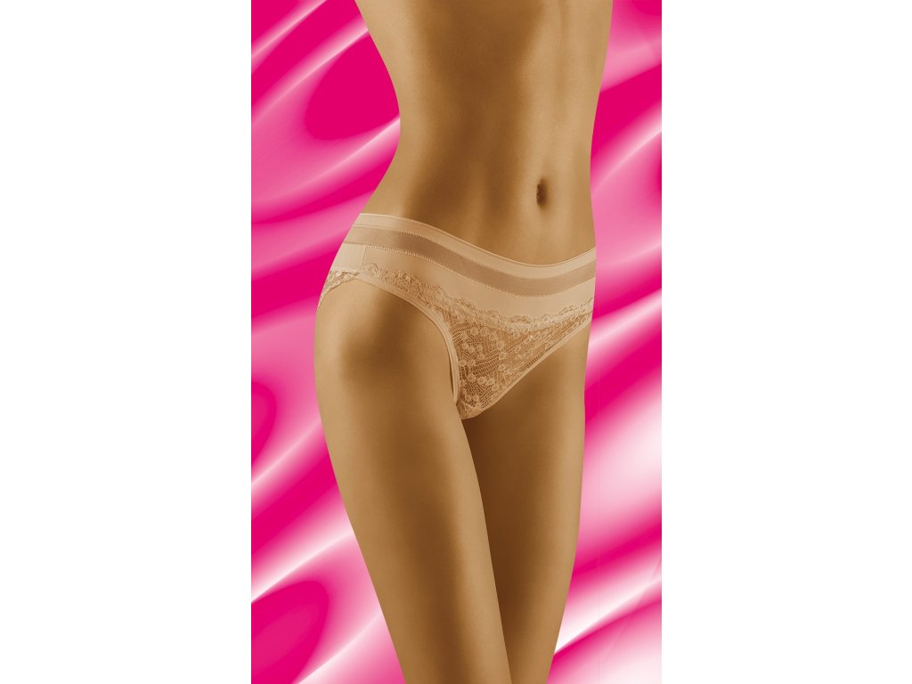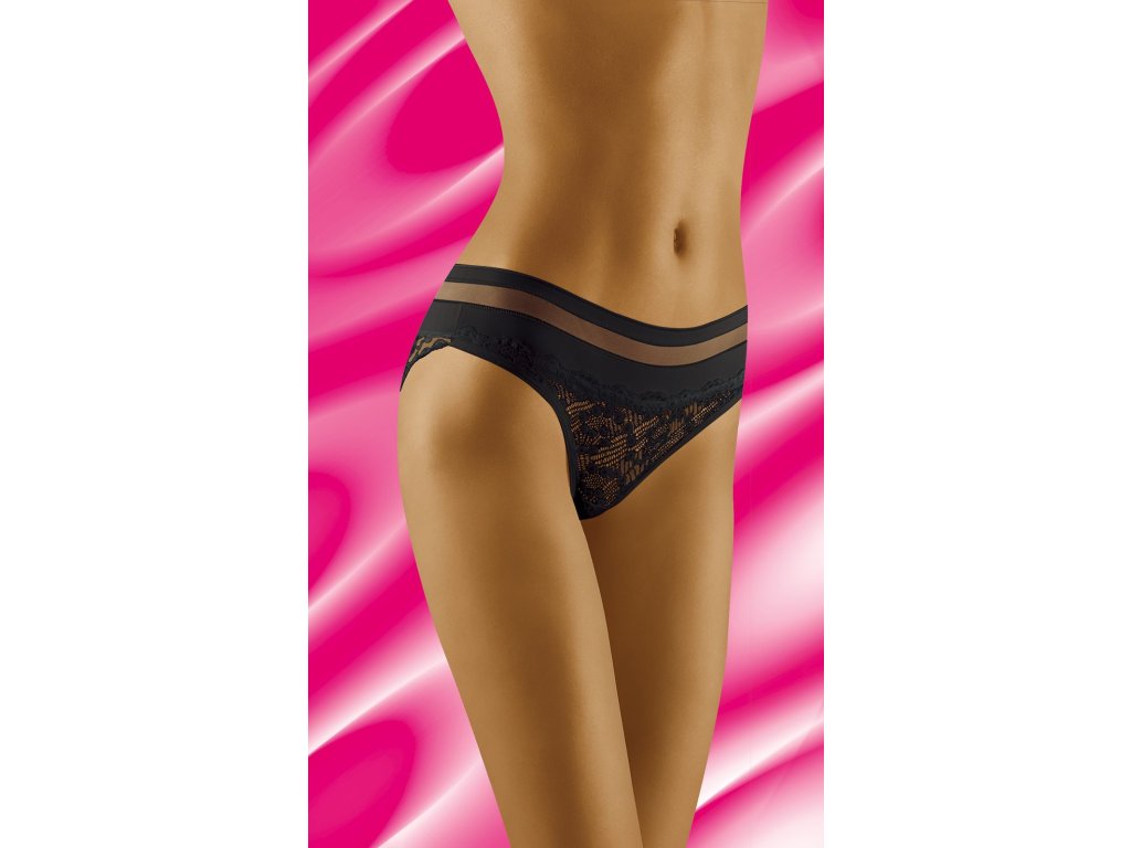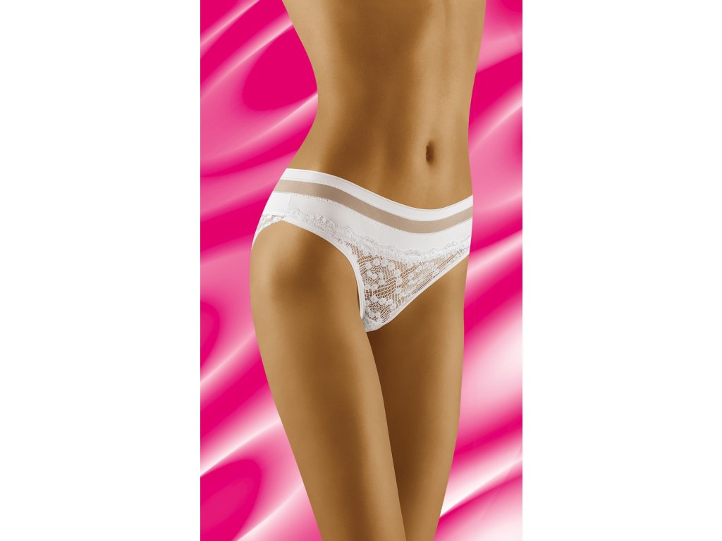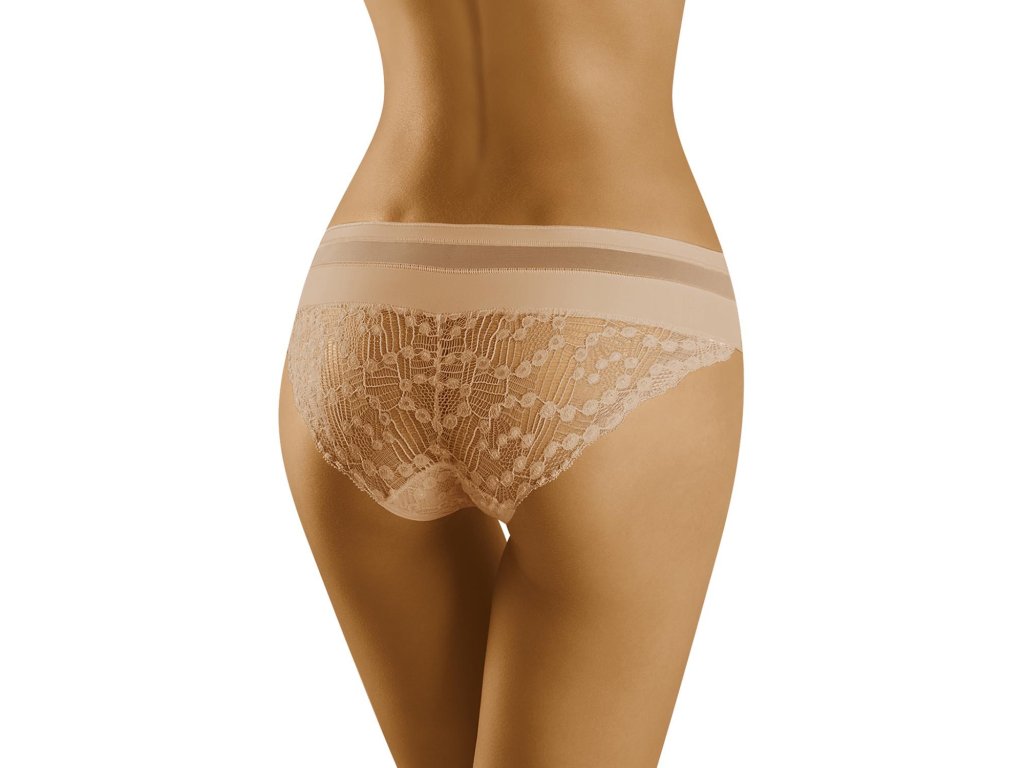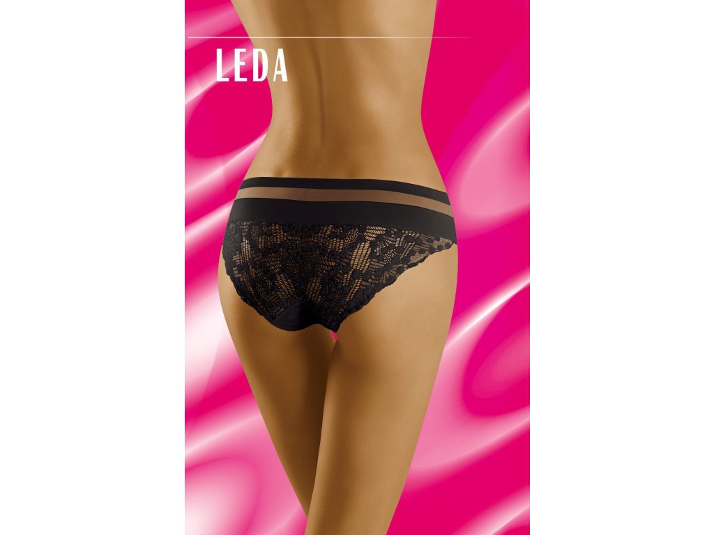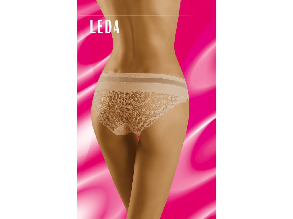 Spodní díl bikin Leda ● klasický střih ● pohodlný elastický pás ● ploché lemy pro větší pohodlí ● horní díl je kombinací hladké tkaniny a smyslné síťoviny ● přední a zadní díl z krásné ažurové krajky zdobené originálním vzorem