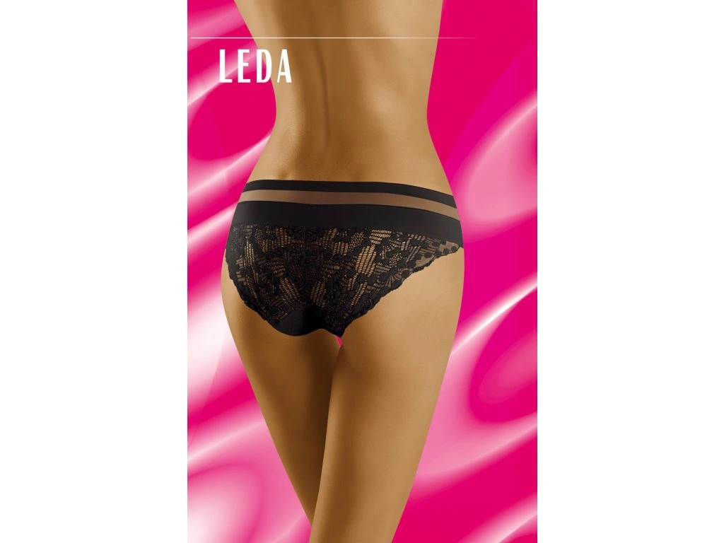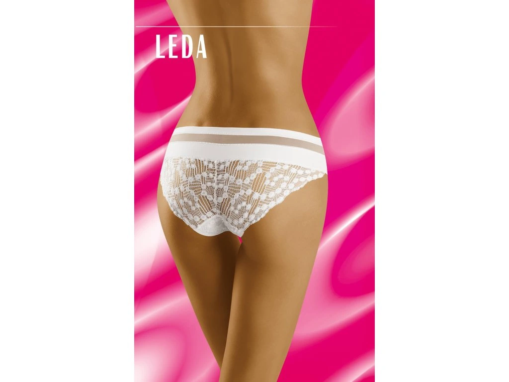 Kalhotky Leda ● klasický střih ● pohodlný elastický pas ● ploché zakončení pro větší pohodlí ● horní část je kombinací hladkého materiálu a smyslné síťoviny ● přední a zadní část jsou vyrobeny z krásné, prolamované krajky zdobené originálním vzorem