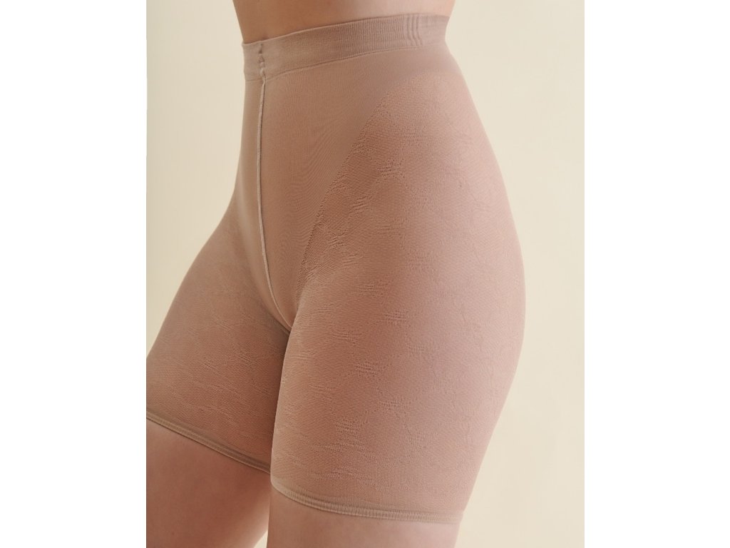 chrání vnitřní část stehen ● opticky zeštíhluje břicho a stehna zároveň ● ozdobná prodloužená nohavička ● kombinuje výhody ozdobného spodního prádla a pásu proti odírání stehen ● speciální, speciální, netlačící elastický pás a stahovací šňůrka v pase zabraňují jejich padání ● šité plochým švem ● ozdobný vzor nohaviček odkazuje na krajkové prádlo ● vyrobené z elastické příze, která obepíná tělo ● zajišťují zeštíhlující efekt a perfektně padnou
