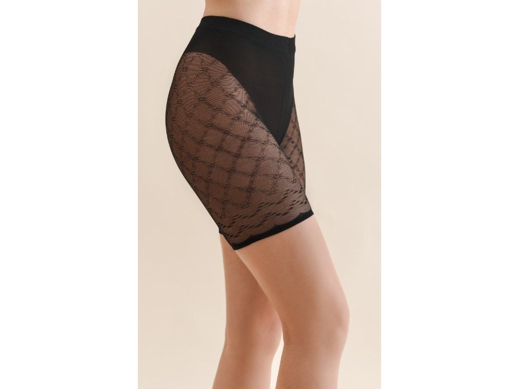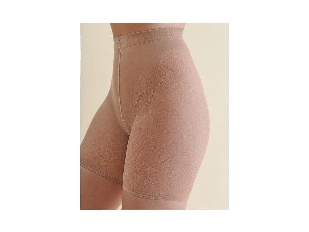Letní elegantní kraťasy ● ozdobné kalhotky proti odření ● chrání vnitřní stranu stehen ● současně opticky zeštíhlují břicho a stehna ● ozdobné prodloužení nohavic ● kombinují výhody ozdobného spodního prádla a pásků proti odření ● speciální, nekompresní elastický pas a manžety nohavic zabraňují padání kalhotek ● prošité plochým švem ● ozdobný vzor nohavic odkazuje na krajkové spodní prádlo ● vyrobené z elastické příze, která obepíná tělo ● poskytují zeštíhlující efekt a perfektně padnou na postavu