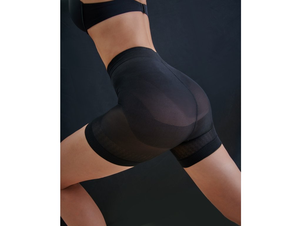 Letní push up šortky ● kalhotky s push up efektem ● pozvednou hýždě a zároveň zploští břicho ● ozdobná prodloužená nohavička zabraňuje odírání stehen ● opticky zeštíhlují horní část stehen ● vlastnosti modelujícího prádla a pásky proti odírání stehen ● speciální, elastický pas ● šitý plochým švem ● mírně lesklý úplet ● z elastické příze ● dokonale se přizpůsobí tělu a zvýrazní ženské křivky ● alternativa k push-up punčochám pro teplé dny