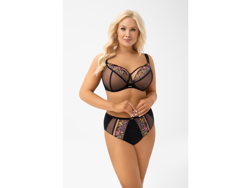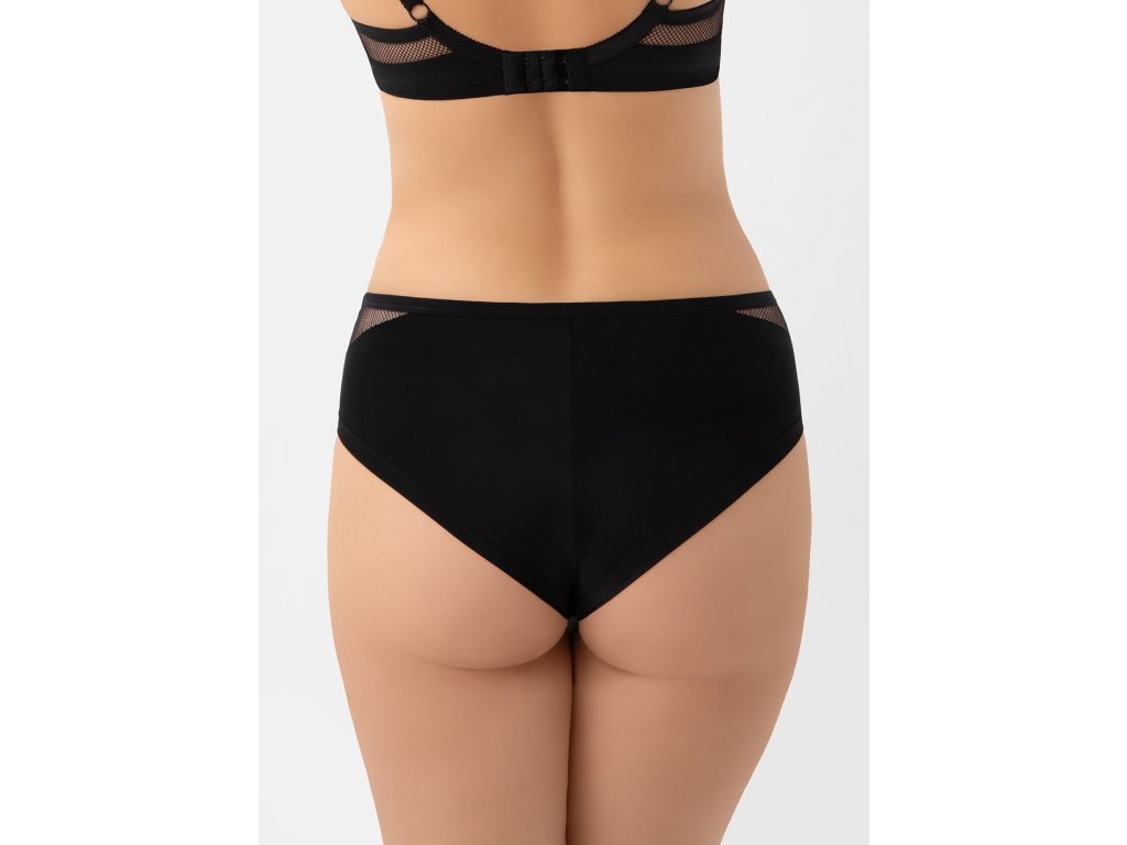 Kalhotky Lilu B002 Brasil Černá ● středně vysoký střih ● odhaluje a zvýrazňuje hýždě ● vyrobeno z neprůhledného mikrovlákna v kombinaci s výšivkou a elastickou krajkou ● zadní díl zakončen ohrnutím okraje mikrovlákna do roviny ● kovové prvky stříbrné barvy (neobsahují nikl) ● bavlněný rozkrok
