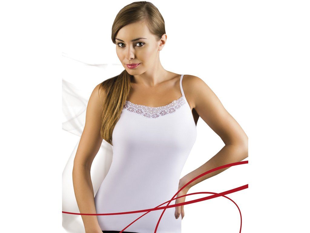 Tričko Maja ● s úzkými ramínky ● vyrobeno z měkkého bavlněného úpletu ● přední část trička zdobí atraktivní vsadka z gipúrové krajky ● baleno v krabičce
