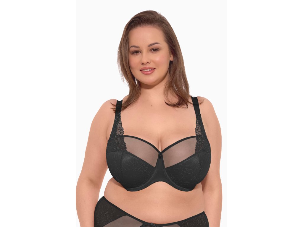 Poloměkká podprsenka Maja Maxi Bra BSM 1300 Black ● polovyztužená, založená na konstrukci SS3MX ● horní košíček ušitý ze stabilního tylu ● spodní košíček ušitý z vyztužující pěny a krajky s květinovým motivem ● spodní košíček podšitý bavlnou ● kombinace horizontálního a vertikálního střihu na košíčku, střih je ideální pro tvarování a podporu poprsí ● jsou použity drátky obepínající prsa ● obvod s bočními velrybími kosticemi, o něco méně pružný, neprověšuje se ● váha poprsí je dobře podepřena, polootevřený výstřih ● ideální pro dámy s plným poprsím ● horní košíček s bočními výztuhami nabírajícími prsa dovnitř ● spodní část košíčku zakrývá bradavky ● zadní díl vykrojený, z husté síťoviny ● saténová mašlička s přívěskem na spojení kostic ● ozdobné, ozdobný krajkový otvor na ramínka se saténovými mašličkami ● ramínka neodnímatelná, nastavitelná ● dvou- nebo třícestné nastavitelné zapínání na háčky a očka ● ideální pod bílé halenky a šaty