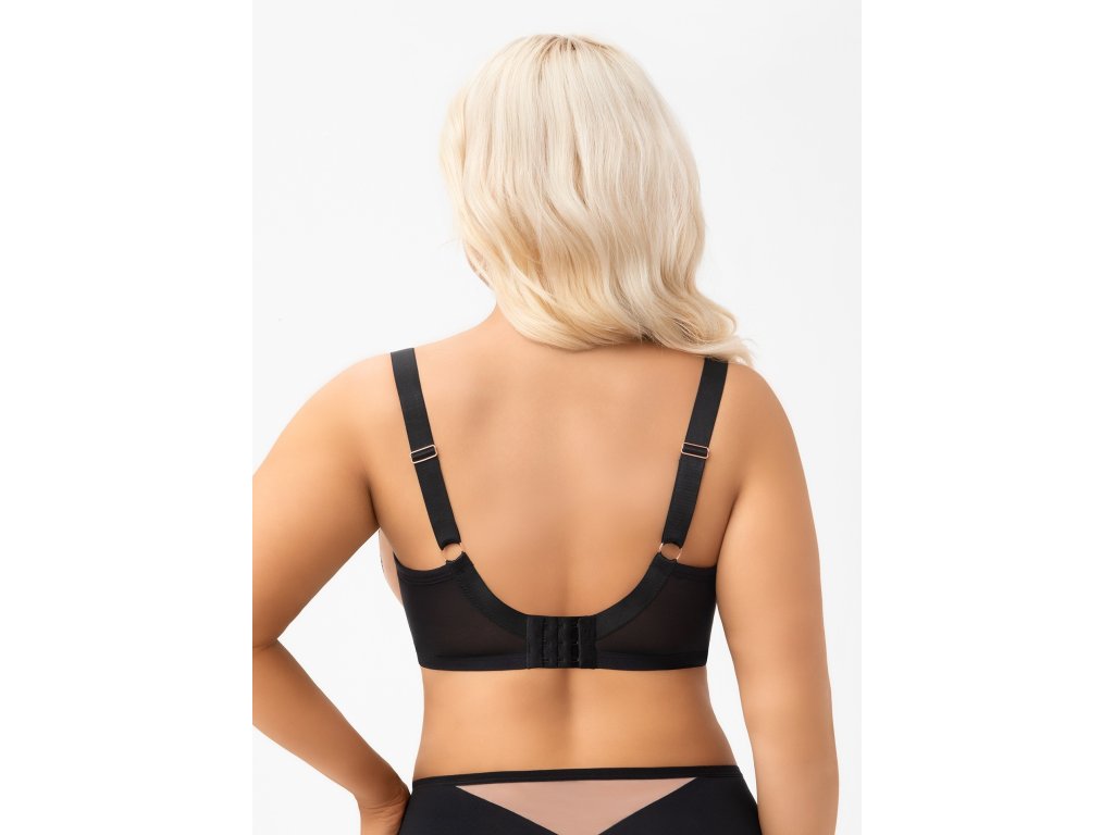 Měkká podprsenka Lexi G001 Black ● design K 614 ● měkká, určena pro ženy se středním a velkým poprsím ● poskytuje zvedací efekt a sestavuje poprsí směrem dovnitř ● třídílné košíčky ze stabilní krajky a flitrového tylu3dílné košíčky vyrobené ze stabilní krajky s flitry a stabilního tylu ● horní okraj košíčků zakončený lesklou páskou ● zadní část z průhledné lycry pro velmi dobré přizpůsobení a oporu ● boční velrybí kostice zabraňující prověšení ● horní a spodní část pro větší pohodlí horní a dolní okraj ramínek je lemován jemným lemováním pro větší pohodlí ● odnímatelná, nastavitelná ramínka ● v závislosti na velikosti dvou- nebo třípolohové zapínání na háčky z mikrovlákna ● třípolohová nastavitelná ramínka ● neklouzavá ramínka, nastavitelná ramínka ve třech šířkách ● kovové prvky v barvě růžového zlata (neobsahují nikl)