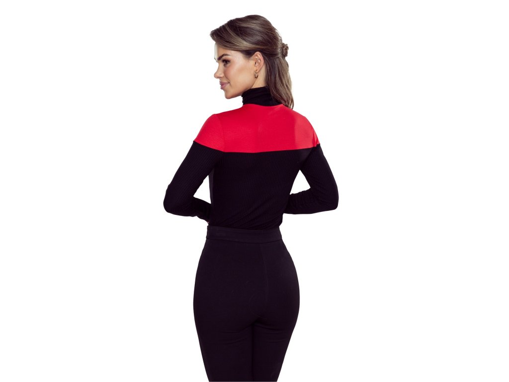 Halenka Mika ● klasika s moderním nádechem ● střih na míru ● žebrovaná struktura látky ● nápadný kontrastní panel u výstřihu ● vysoký rolák a dlouhé úzké rukávy ● z elastického, měkkého viskózového úpletu ● ideální pro běžné i formální oblečení ● struktura látky: hladký úplet/pruhovaný úplet ● střih na míru