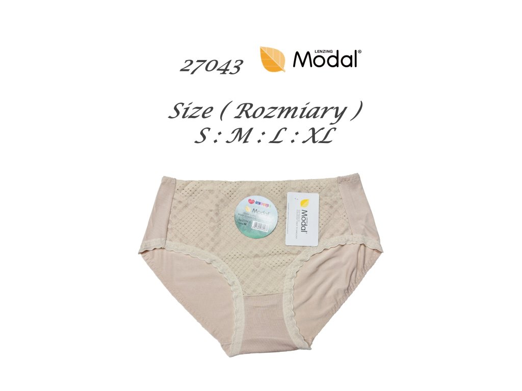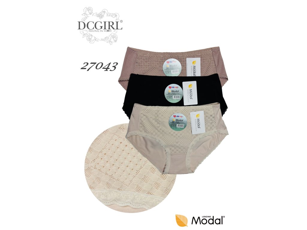 Modální kalhotky 27043 ● klasické dámské bikiny ● z modalu ● vpředu zdobené krajkou ● plochý elastický pás ● velmi měkké a příjemné na dotek ● baleno v sáčku po 2 kusech ● mix prodej, barvy vybrány náhodně