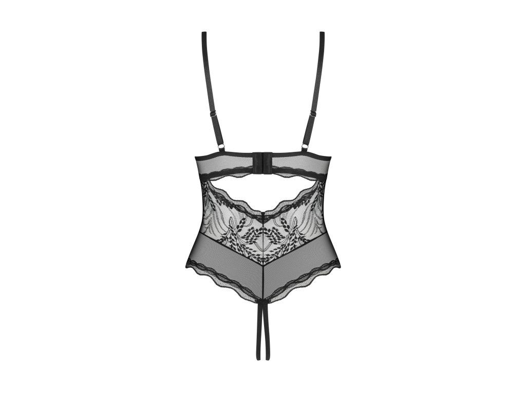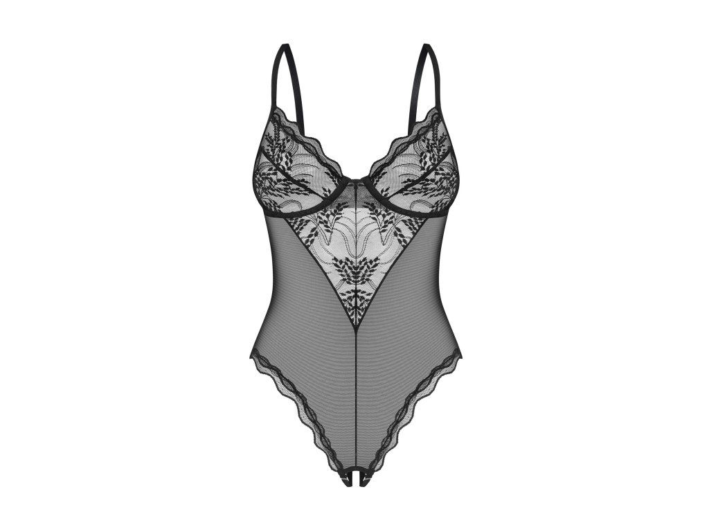 Perisia Open Body ● klasický body s kulatými košíčky a kosticemi ● otevřený spodní díl, odnímatelná ramínka v rozkroku ● vyrobeno z měkké, elastické krajky a prémiové síťoviny ● zajišťuje pohodlí a perfektní přizpůsobení postavě ● propracované detaily: organický vzor, ozdobný lem, stříbrné kovové doplňky ● dokonale zachovaná rovnováha mezi smyslným střihem a elegantním provedením ● nastavitelná ramínka, vícestupňové zapínání na zadní straně