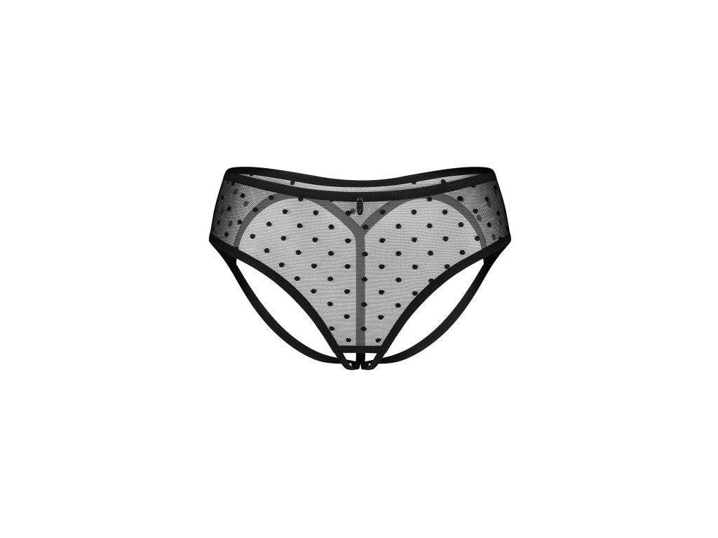Nuites Open Bottoms ● otevřený střih ● vysoký pas ● s výřezem ve tvaru srdce na hýždích ● kvalitní průhledná síťovina se postará o pohodlí nositelky ● spodní prádlo je zdobeno puntíky a stříbrným přívěskem