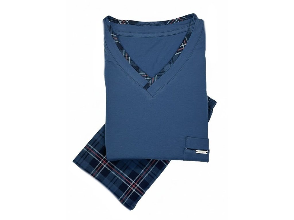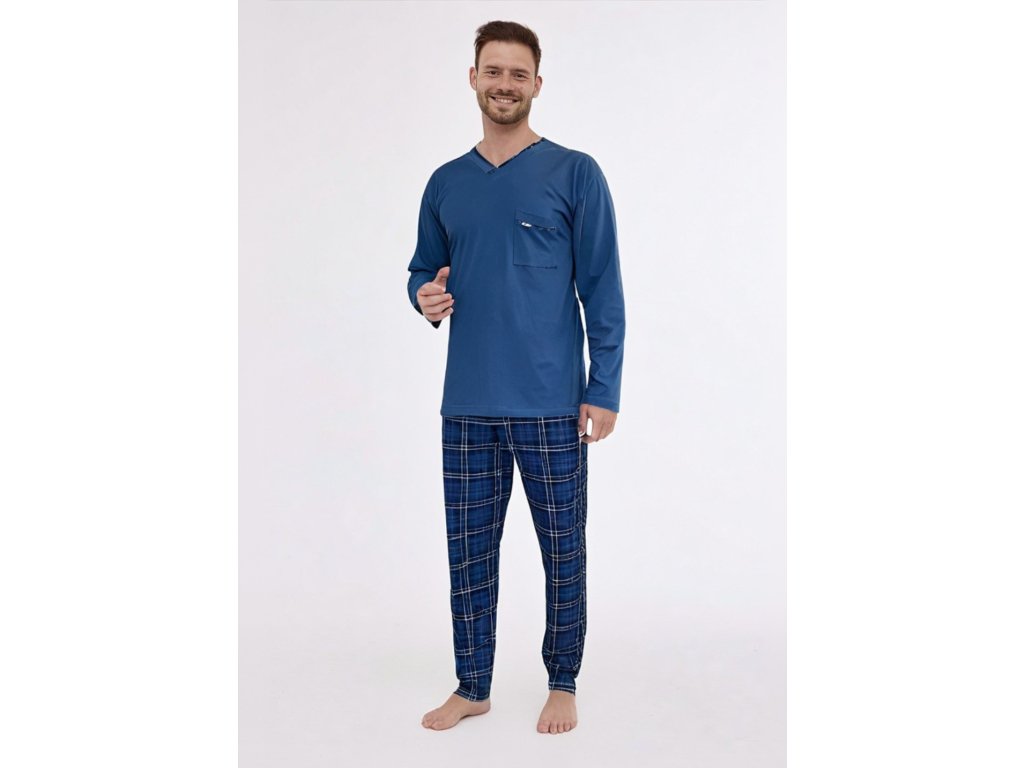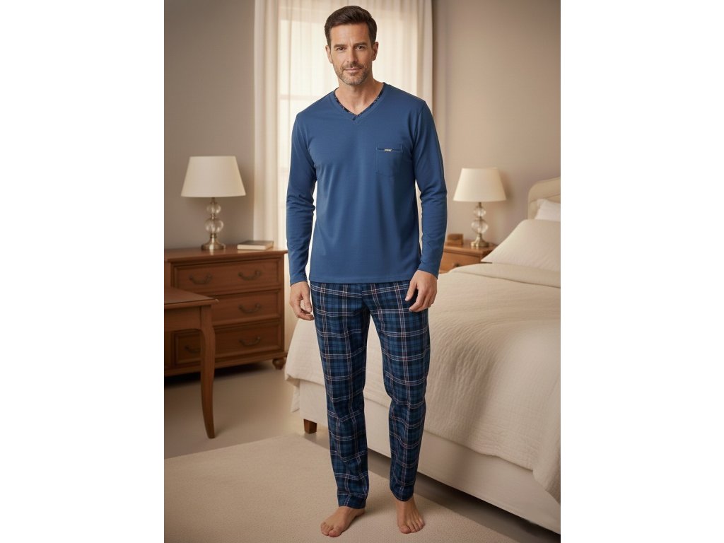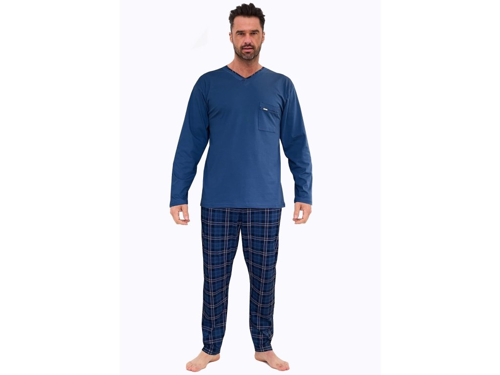 Pánské pyžamo 122/210 Victor ● elegantní dvoudílné ● s dlouhými rukávy a dlouhými nohavicemi ● s hladkým vrškem a ušlechtilou kostkou na kalhotách ● z vysoce kvalitního úpletu, z vysoce kvalitní pleteniny, která je měkká na dotek a jemná k pokožce ● volný střih pro naprosté pohodlí a snadný spánek ● vrchní díl s výstřihem ve tvaru srdce je obohacen o praktickou kapsu ● elegantní plisovaný výstřih dodává pyžamu ušlechtilý nádech ● souprava je zabalena v atraktivní krabičce ● ideální jako praktický dárek