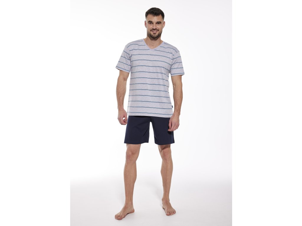 Pánské pyžamo Various 330/41 ● z vysoce kvalitní prodyšné bavlny ● s krátkými rukávy a šortkami ● vrchní díl pyžama s klasickými vodorovnými pruhy ● výstřih je lemován jemným lemováním ● hladký střih rovného střihu šortek ● jemné na dotek a šetrné k pokožce ● baleno v elegantní krabičce ● vhodné také jako praktický dárek