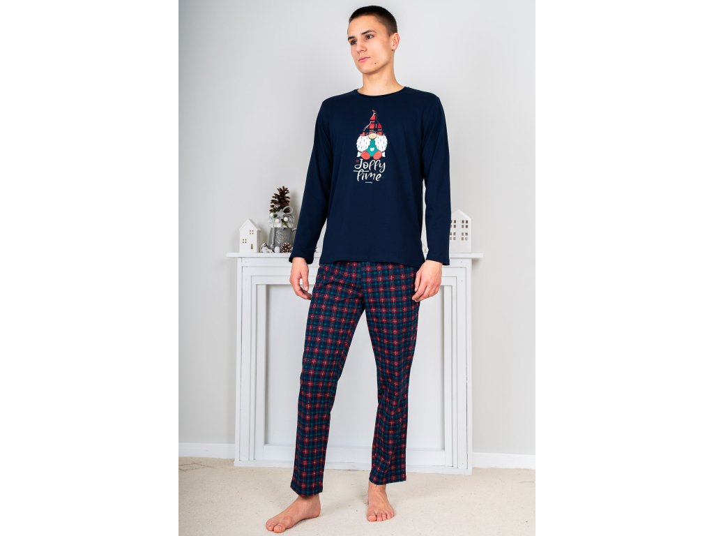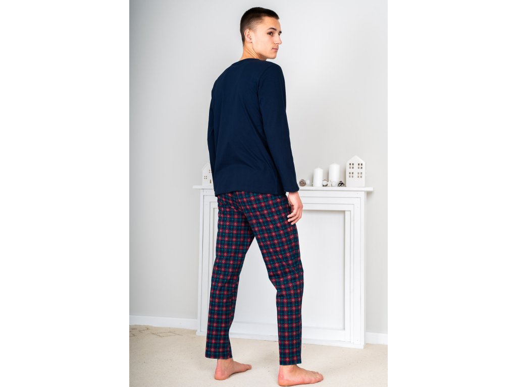 Pánské pyžamo Skrzat ● materiál - bavlna ● dlouhé kostkované kalhoty ● blůza s dlouhým rukávem v tmavě modré barvě ● potisk Skrzat na blůze ● vysoká omyvatelnost ● záruka pohodlí při spaní ● polský design a výroba