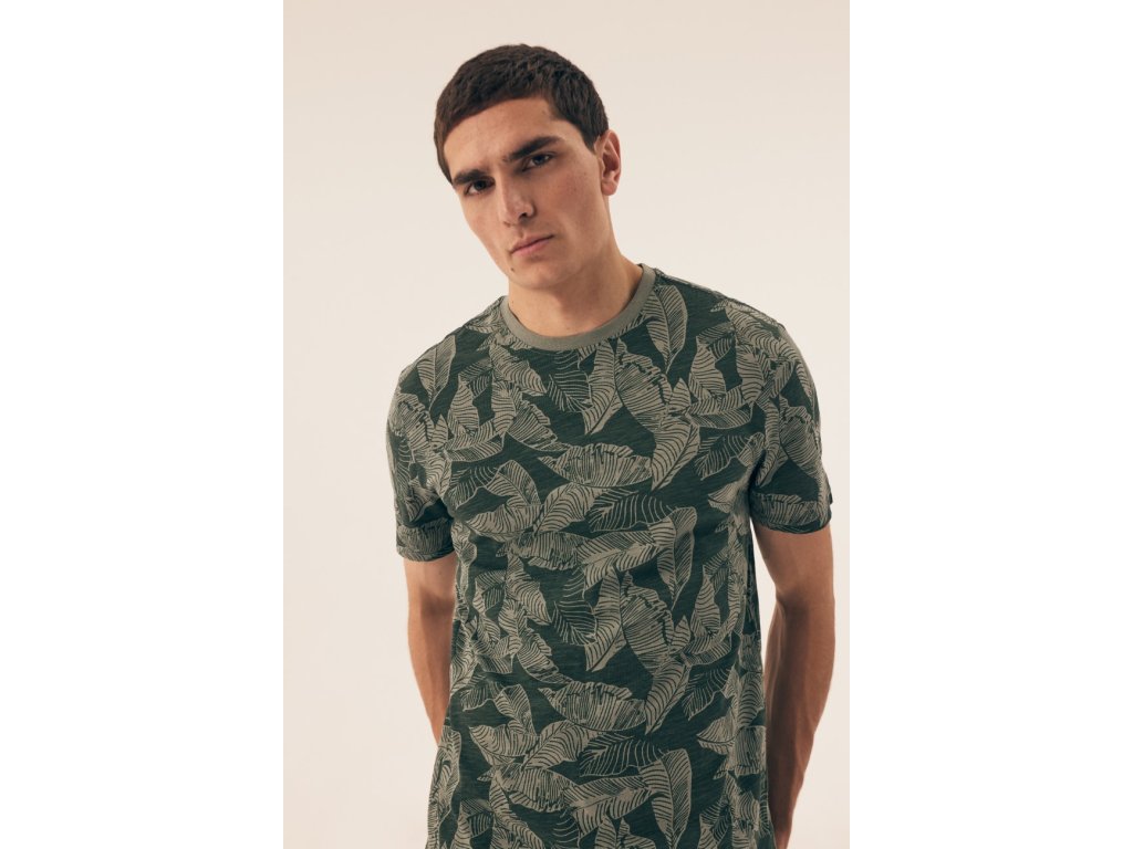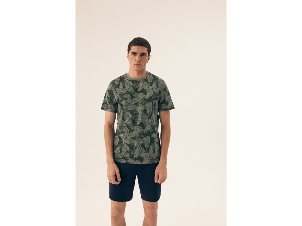 Pánské pyžamo vysoce kvalitní bavlněné tričko s krátkým rukávem s květinovým potiskem, jednobarevné krátké šortky s výstřihem