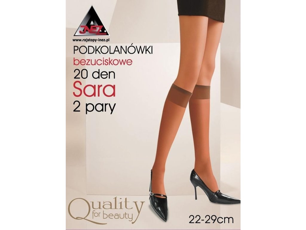 Podkolenky Sara Elastil 20 Den ● dámské podkolenky ● z elastilu ● se širokým netlačícím lemem ● zesílení na špičkách ● tloušťka 20 Den ● balené po párech v krabici